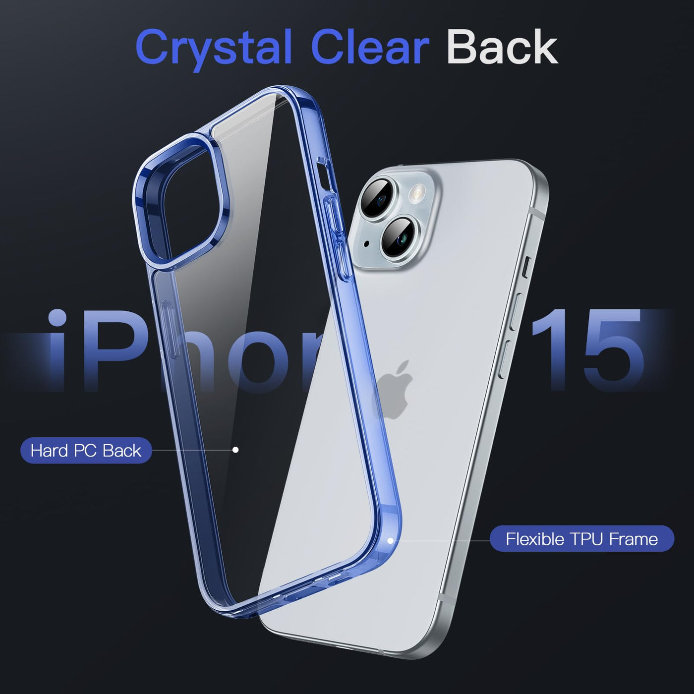 Jetech Case For Iphone 15 6.1 Inch, Non Yellowing Shockproof Phone Bumper Cover, Anti Scratch Clear Back (Dark Blue)