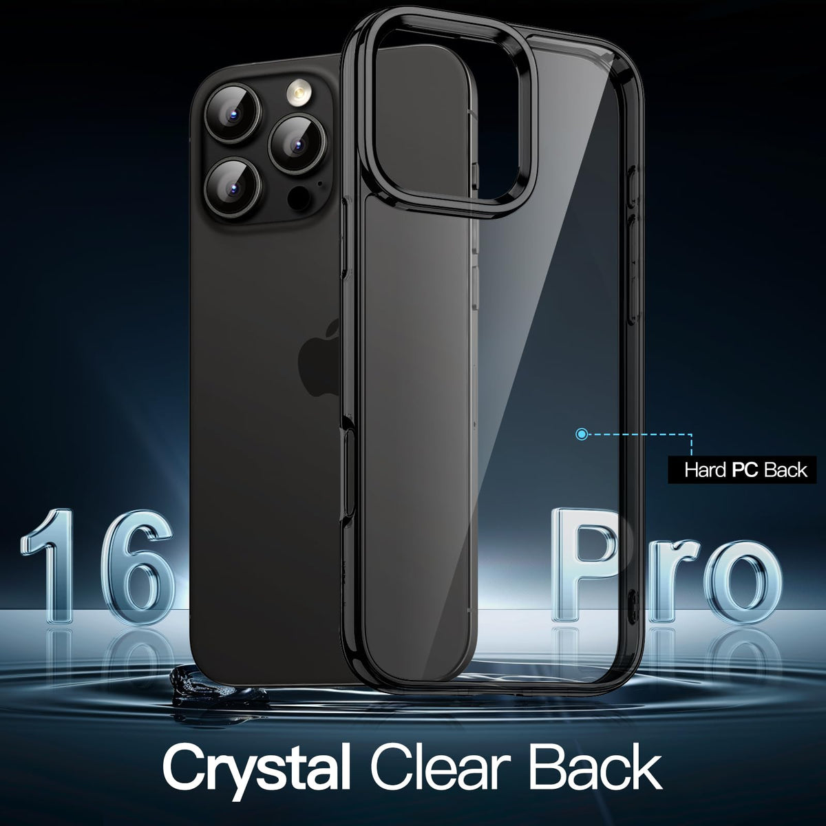 Jetech Case For Iphone 16 Pro 6.3 Inch, Non Yellowing Shockproof Phone Bumper Cover, Anti Scratch Clear Back (Black)