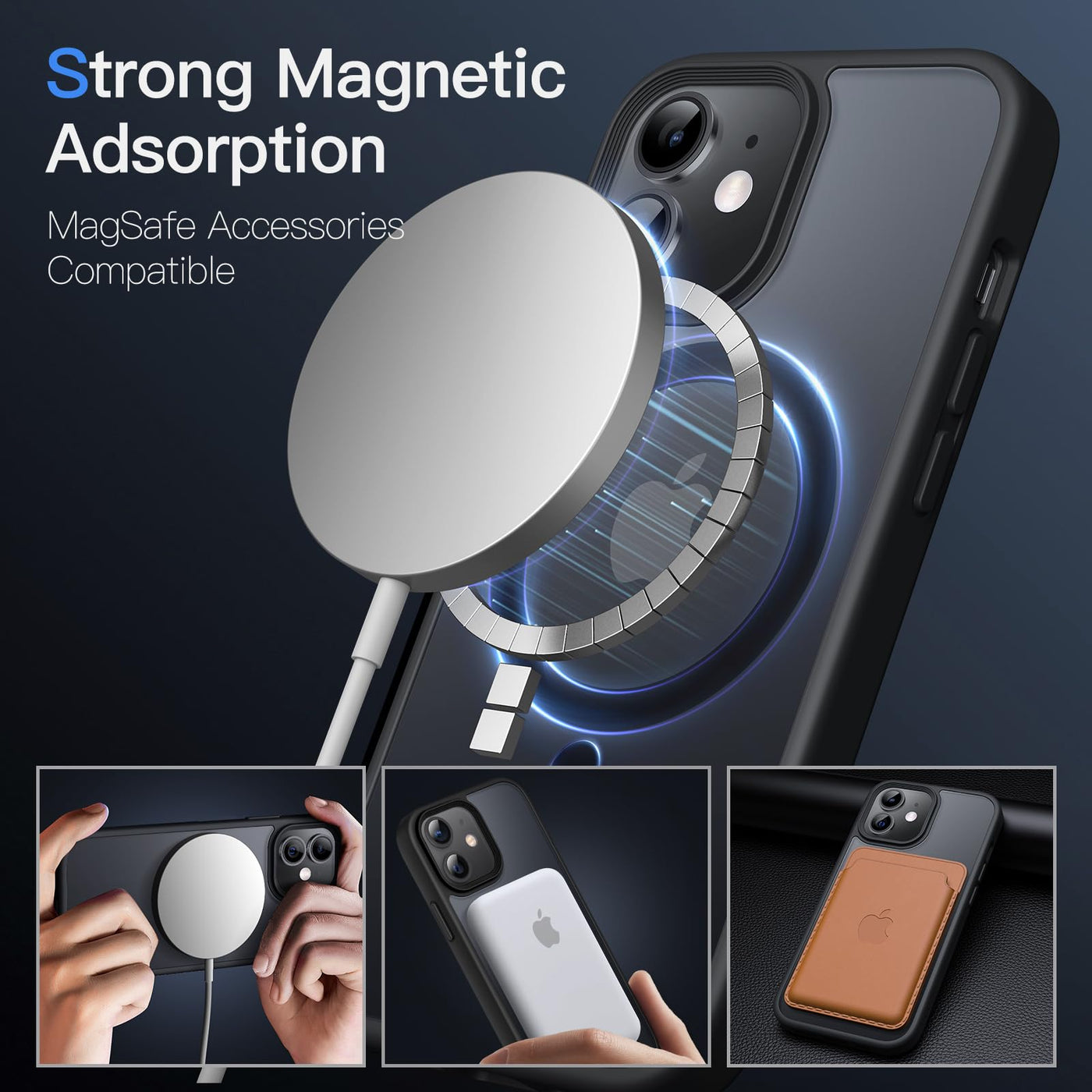 Jetech Magnetic Case For Iphone 12 Mini 5.4 Inch Compatible With Magsafe, Translucent Matte Back Slim Shockproof Phone Cover (Bl