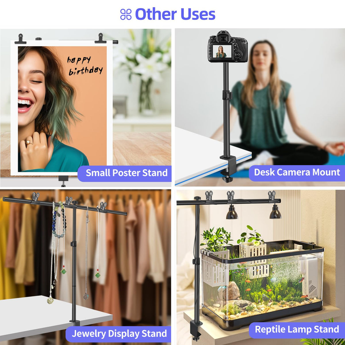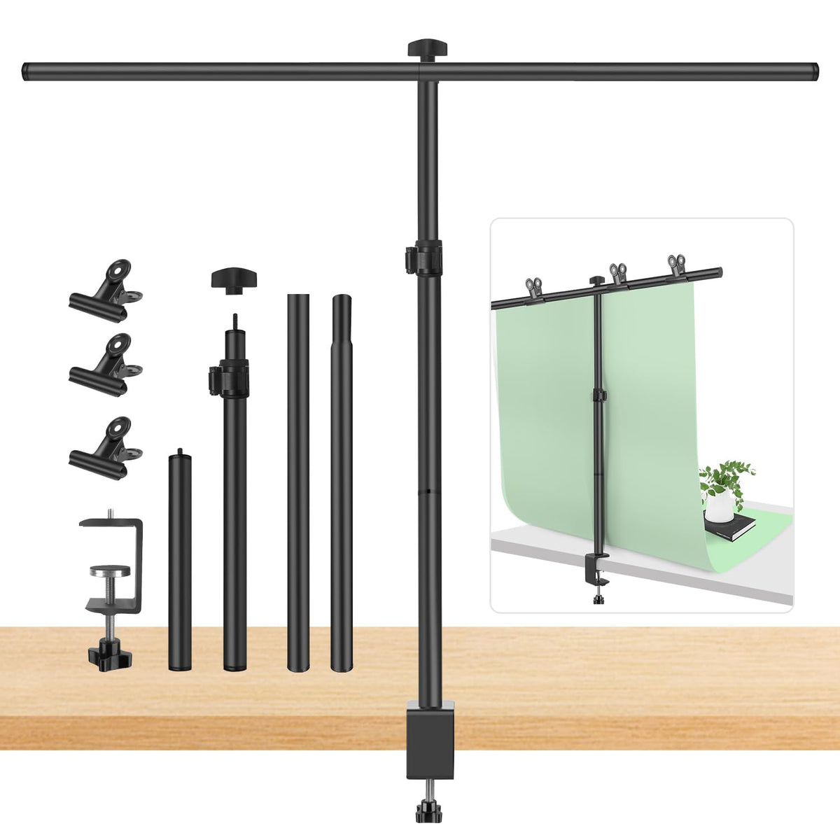 Jinsui Tabletop Backdrop Stand 31X35.4 Inches/78X90 Cm Small T Shape Support Light Stand Mini Holder For Photo Studiothe 2.6Ft Wide X 3Ft High Mini Desktop Support Frame Can Be Used For Background Board, Gradient Paper, Background Cloth, Background Paper. Great Christmas Gift For The Photographer / Videographer / Content Creator In Your Life!Package Content: (1X) Short Stand (1X) 2-Section Stand (2X) Crossbar (1X) C-Clamp (3X) Spring Clamps The Backdrop Holder Is Made Of Aluminum Alloy For Light Weight, Portable And Durable. T Stand Backdrop Holder Small Is Suitable For Pvc Background Or Small Size Backdrop. Strong Load-Bearing, Super Stable Structure, Our C Clamp Had Larger And Wider Than Others, More Stable And Steady.Related Keywords: Small Backdrop Stand Tabletop Desktop, Mini Backdrop Frame Holder Board, Photography Photo Shoot Backdrop Holder, Small Backdrop Stand For Product Pictures Photoshoot