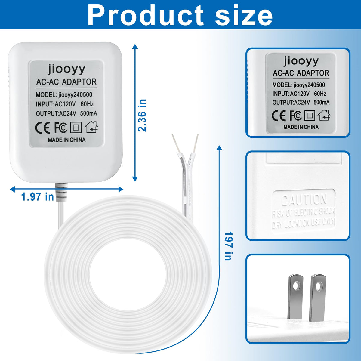 Jiooyy 24V 500Ma Doorbell Power Adapter 16.4Ft Long C Wire Power Supply, Doorbell Transformer Fits Ring, Nest Hello, Wyze, Euf