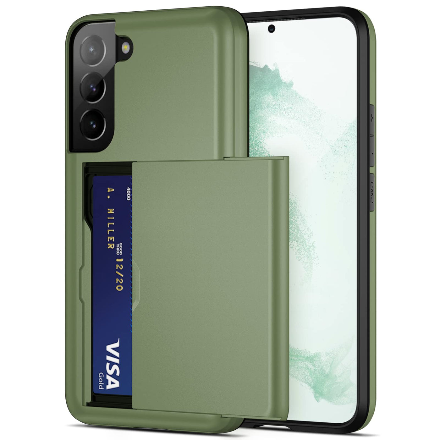 Jiunai For Samsung S22 Case, Galaxy S22 Case Credit Card Ids Cash Holder Shell Wallet Case Slide Cover Dual Layer Hard Pc Rubber