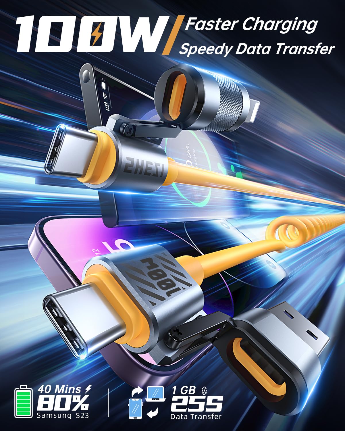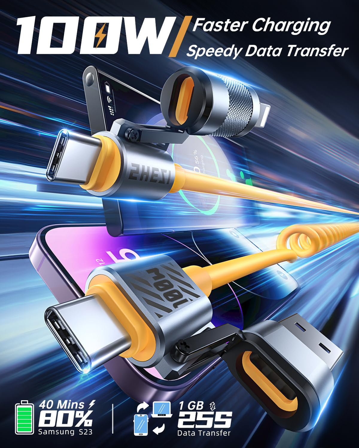Jixivor Usb C Cable [Shezi-Style] 4 In 1 100W Coiled Phone Charger Cable Charge Any Of Your Devices With The 4 In 1 Charging Cable, It Combines 4 Ports1??Usb A To Usb C2??Usb A To L3??Usb C To L4??Usb C To Usb C, One Cable For All! L-Port: With Charging And Data Transmission Functions. Compatible With Iphone 15/ 15 Pro/ 15 Plus/ 15 Pro Max/ 14/ 14 Pro/ 14 Plus/ 14 Pro Max/ 13/ 13 Pro/ 13 Mini/ 13 Pro Max/ 12/ 12 Pro/ 12 Mini/ 12 Pro Max/ 11/ 11 Pro/ 11 Pro Max/ Xr/ X/ Xs/ Xs Max/ Iphone 8/ 8 Plus. Usb C-Port: Have Charge Function. Compatible With Samsung Galaxy S22/ S22+/ S22 Ultra/ S21/ S20/ S20+ (Plus)/ S20 Ultra/ S10E/ S10/ S10+ (Plus)/ S9/ S9+ (Plus)/ S8/ S8+ (Plus)/ S7 Edge/ S6 Edge /Note 20/ Note 20 5G/ Note 20 Ultra 5G/ Note 10/ Note 10+ (Plus)/ Note 9/ Note 8/ Note 7/ Note 5. Usb A-Port: Have Charge Function. Compatible With Most Android And Windows Phones, Tablets And Many Other Devices Including/Htc/Nokia/Lg/Sony/Bluetooth/Speakers/Headphone/Earphone/Mp4/Mp3/Ps/Gps Device. Designed For Cars: 100% Support Carplay & Android Aito. Coiled Design Prevents Cables From Falling To The Ground And Affecting Driving Safety. What You Will Get:4 In 1 Usb Charger Cables (Combo L-Port/ Type C*2/ Usb A Ports).