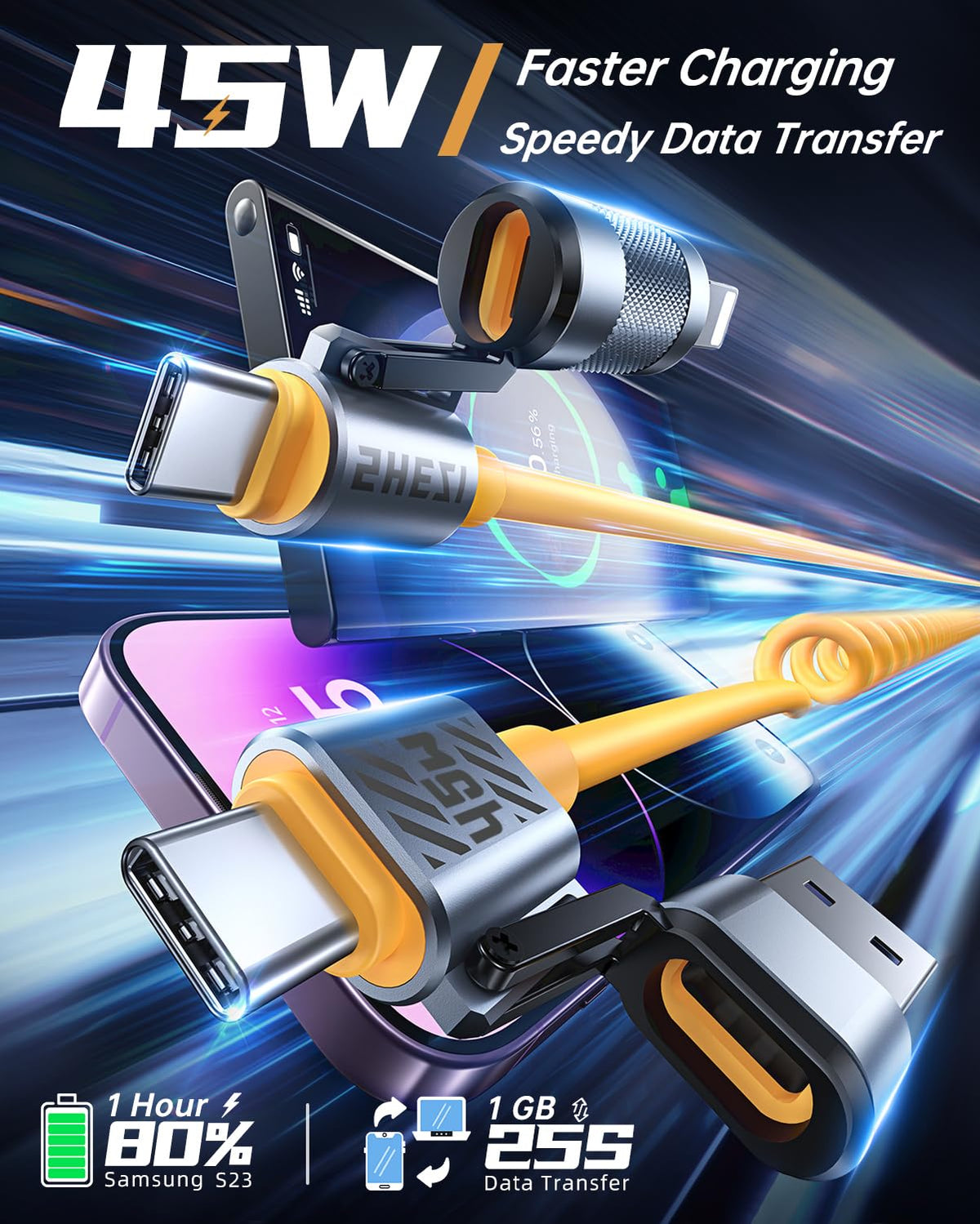 Jixivor Usb C Cable [Shezi-Style] 4 In 1 45W Coiled Phone Charger Cable Charge Any Of Your Devices With The 4 In 1 Charging Cable, It Combines 4 Ports1??Usb A To Usb C2??Usb A To L3??Usb C To L4??Usb C To Usb C, One Cable For All! L-Port: With Charging And Data Transmission Functions. Compatible With Iphone 15/ 15 Pro/ 15 Plus/ 15 Pro Max/ 14/ 14 Pro/ 14 Plus/ 14 Pro Max/ 13/ 13 Pro/ 13 Mini/ 13 Pro Max/ 12/ 12 Pro/ 12 Mini/ 12 Pro Max/ 11/ 11 Pro/ 11 Pro Max/ Xr/ X/ Xs/ Xs Max/ Iphone 8/ 8 Plus. Usb C-Port: Have Charge Function. Compatible With Samsung Galaxy S22/ S22+/ S22 Ultra/ S21/ S20/ S20+ (Plus)/ S20 Ultra/ S10E/ S10/ S10+ (Plus)/ S9/ S9+ (Plus)/ S8/ S8+ (Plus)/ S7 Edge/ S6 Edge /Note 20/ Note 20 5G/ Note 20 Ultra 5G/ Note 10/ Note 10+ (Plus)/ Note 9/ Note 8/ Note 7/ Note 5. Usb A-Port: Have Charge Function. Compatible With Most Android And Windows Phones, Tablets And Many Other Devices Including/Htc/Nokia/Lg/Sony/Bluetooth/Speakers/Headphone/Earphone/Mp4/Mp3/Ps/Gps Device. Designed For Cars: 100% Support Carplay & Android Aito. Coiled Design Prevents Cables From Falling To The Ground And Affecting Driving Safety. What You Will Get:4 In 1 Usb Charger Cables (Combo L-Port/ Type C*2/ Usb A Ports).