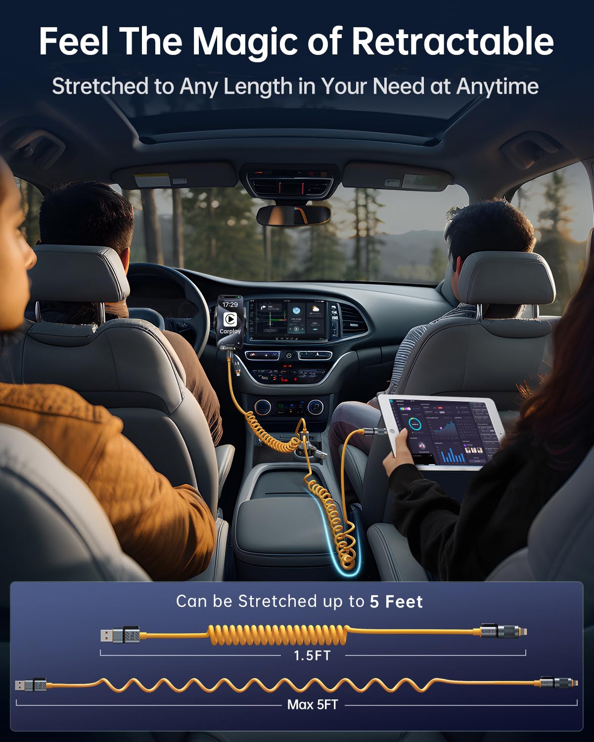 Jixivor 4 In 1 Coiled Usb C Cable, 45W Lightning Cable For Car With Magnetic Clips, Usb To Lightning Cable Fast Charging [Carpla