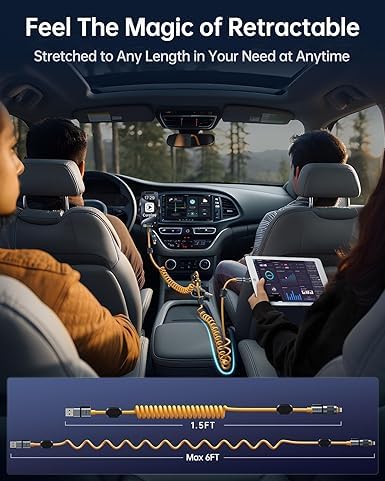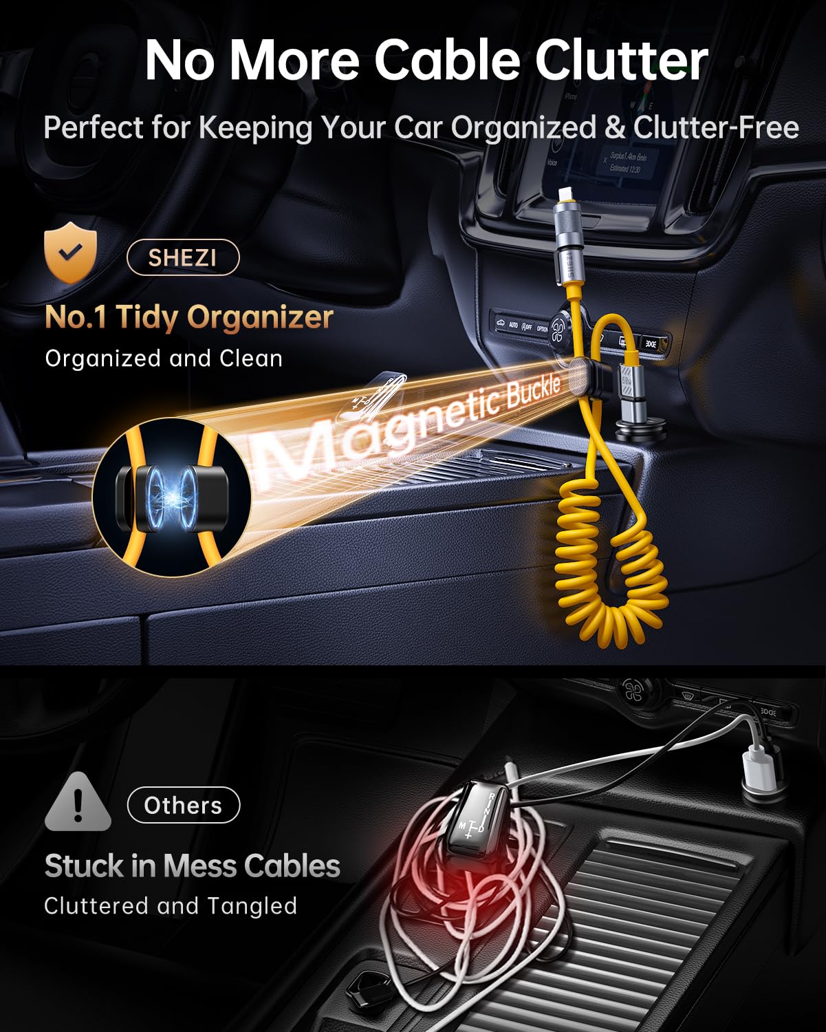 Jixivor 4 In 1 Coiled Usb C Cable For Car [Shezi Style] 60W Iphone Charger Fast Charging Cord With Magnetic Clips, Usb C To Usb