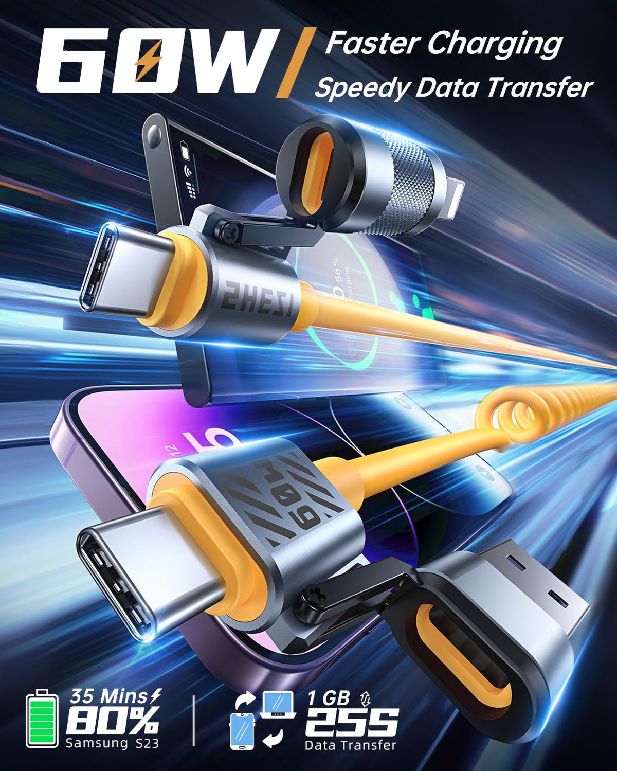 Jixivor Usb C Cable [Shezi-Style] 4 In 1 60W Coiled Phone Charger Cable Charge Any Of Your Devices With The 4 In 1 Charging Cable, It Combines 4 Ports1??Usb A To Usb C2??Usb A To L3??Usb C To L4??Usb C To Usb C, One Cable For All! L-Port: With Charging And Data Transmission Functions. Compatible With Iphone 15/ 15 Pro/ 15 Plus/ 15 Pro Max/ 14/ 14 Pro/ 14 Plus/ 14 Pro Max/ 13/ 13 Pro/ 13 Mini/ 13 Pro Max/ 12/ 12 Pro/ 12 Mini/ 12 Pro Max/ 11/ 11 Pro/ 11 Pro Max/ Xr/ X/ Xs/ Xs Max/ Iphone 8/ 8 Plus. Usb C-Port: Have Charge Function. Compatible With Samsung Galaxy S22/ S22+/ S22 Ultra/ S21/ S20/ S20+ (Plus)/ S20 Ultra/ S10E/ S10/ S10+ (Plus)/ S9/ S9+ (Plus)/ S8/ S8+ (Plus)/ S7 Edge/ S6 Edge /Note 20/ Note 20 5G/ Note 20 Ultra 5G/ Note 10/ Note 10+ (Plus)/ Note 9/ Note 8/ Note 7/ Note 5. Usb A-Port: Have Charge Function. Compatible With Most Android And Windows Phones, Tablets And Many Other Devices Including/Htc/Nokia/Lg/Sony/Bluetooth/Speakers/Headphone/Earphone/Mp4/Mp3/Ps/Gps Device. Designed For Cars: 100% Support Carplay & Android Auto. Coiled Design Prevents Cables From Falling To The Ground And Affecting Driving Safety. Magnetic Clips: Comes With A Pair Of Strong Magnetic Cable Clips, One Hand Gently Closed To Complete The Cable Organization, No Knots, No Tangle.. What You Will Get:4 In 1 Usb Charger Cables (Combo L-Port/ Type C*2/ Usb A Ports).