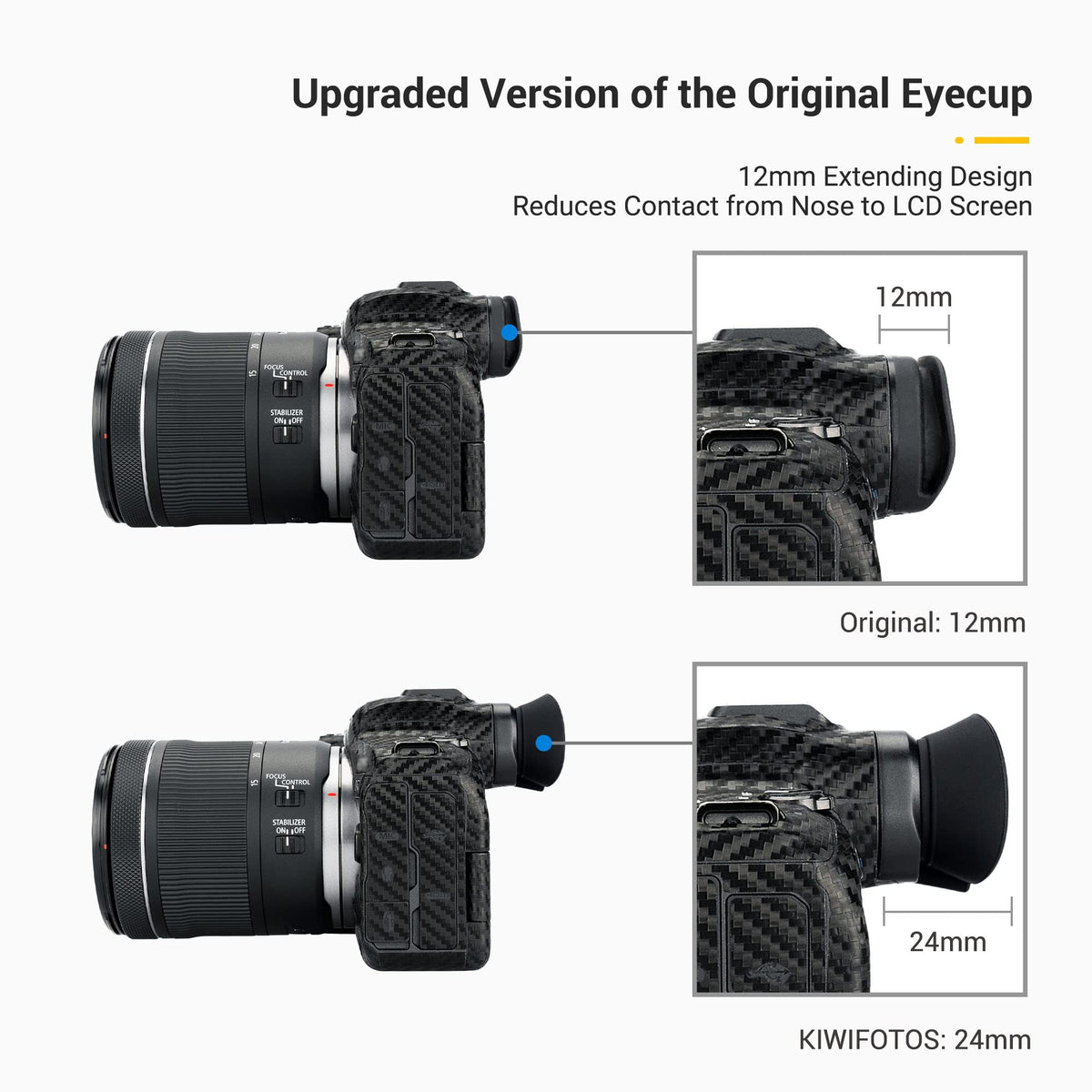 The Jjc Extended Viewfinder Is Dedicated To Canon Eos R5 And R6 Camera. The Eyepiece Helps To Protect Your Viewfinder From Dust, Moisture, And Scratches. It Extends From The Viewfinder, Blocking Stray Light And Providing A Clearer Image. The Eyecup Is Made Of Soft Silicone Material For Comfortable Shooting. Moreover, It Doesnt Affect The Normal Use Of The Sensor And Lcd Monitor. Camera Compatibility: Canon Eos R5 Canon Eos R6 Materials: Abs + Silicone Item Size: 2.1X1.4X0.9 Inches Item Weight: 0.25 Ounces What You Get : Extended Eye Cup X 1 Note* 1. Please Check Carefully The Compatible Camera List Before Purchasing. 2. The Camera Is Excluded.
