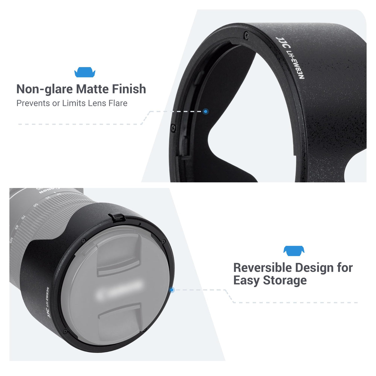 Product Highlights For Can. Rf 24-105Mm F/4L Is Usm Lens Replaces Can. Ew-83N Blocks Stray Light From Entering The Lens Protects Lens From Impact Reversible For Compact Storage Allows Putting On A ?77Mm Filter And Lens Cap A Non-Glare Matte Finish Prevents Reflections No Vignetting Will Show With The Hood On