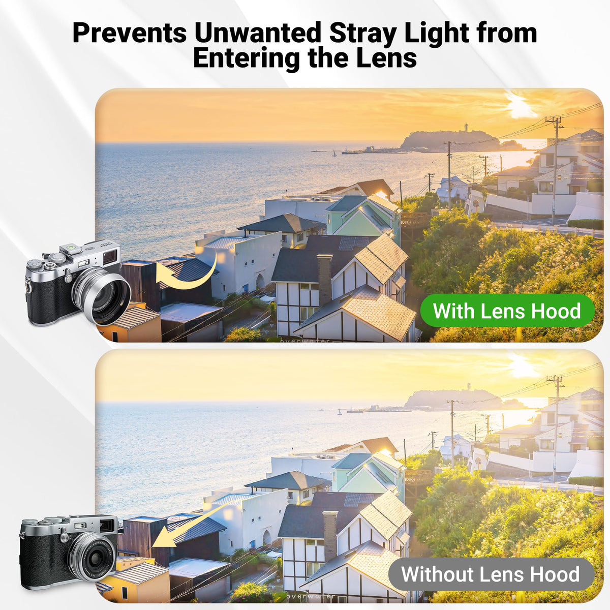 Q: Does this lens hood provide protection against impacts?A: Yes, the extended design of the lens hood not only minimizes lens flare but also offers extra protection against accidental impacts and the elements.