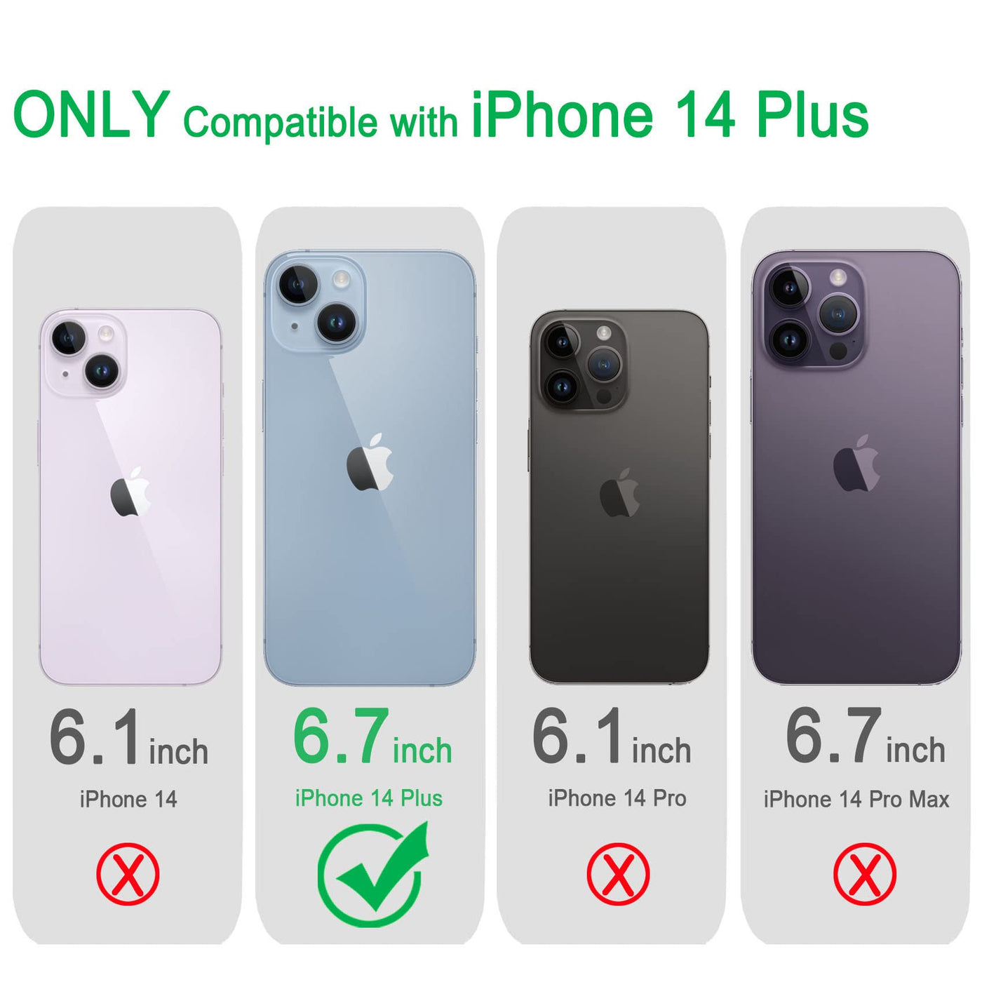 Q: Is the JJGoo iPhone 14 Plus case compatible with other iPhone models?A: No, the JJGoo case is specifically designed for the iPhone 14 Plus, which measures 6.7 inches and was released in 2022. It may not fit other iPhone models properly.
