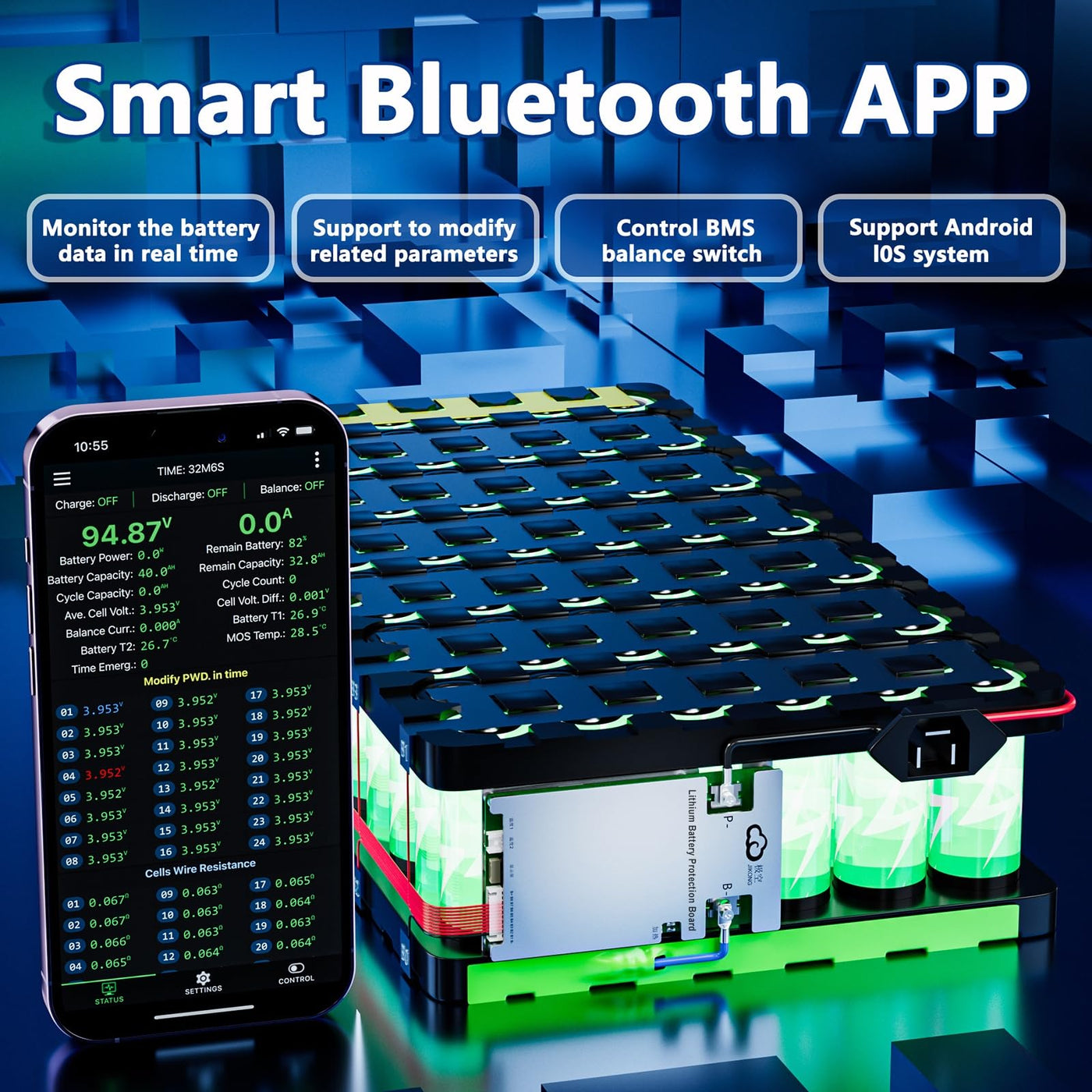 • Q: Can I monitor my battery status remotely with the JKBMS Smart BMS? A: Yes, the JKBMS Smart BMS comes with built-in Bluetooth connectivity, allowing you to manage and monitor your battery status through the JK BMS mobile app, available for both Android and iOS devices.