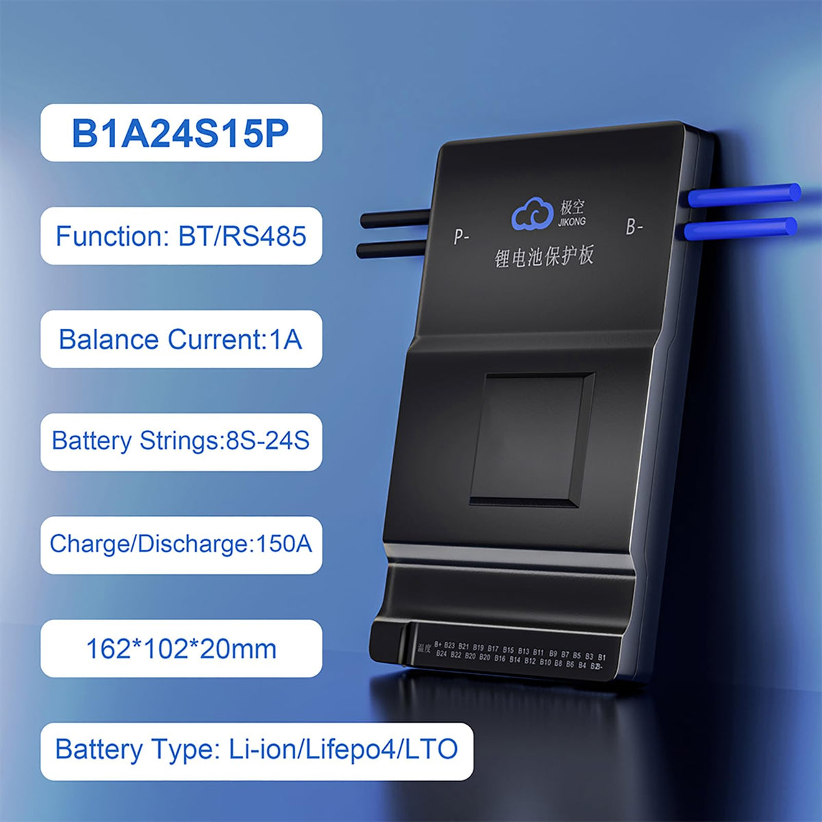 Description: Accessory Type : Battery Accessories Brand Name : Jkbms Origin : Mainland China Battery String : 8S-24S Continuous Current : 150A Battery Type : Li-Ion,Lifepo4,Lto Balance Method : Active Balacnce Balance Current : 1A Applications : 3.2V Lifepo4,3.7V Li-Ion Voltage : Bms 24V - Bms 72V Temp Sensor : Yes Bluetooth : Built-In Certification : Iso/ Fcc/ Rohs/ Pse/ Ce Overcurrent Protection : Yes Over Charge Protection : Yes Over Discharge Voltage : Yes Short Circuit Protection : Yes Temperature Protection : Yes Balance Function : Yes Gps Function : According To Cusotmer Need Can Communication : According To Cusotmer Need Rs485 Function : According To Cusotmer Need Jkbms Brand Promise: Non-Human Damage?1 Year Manufacturer,Provide After-Sales Technical Support. Package: Bms?Bluetooth Built-In?*1 Wires (70Cm)*1 Switch(50Cm)*1 Ntc(40Cm)*1 Operate Manual*1 Note: Strictly Forbidden To Reversely Connect The B- And C- Cables Of The Bms, Forbidden To Confuse Wiring. Wiring Must Start From B- To B+ And Be Connected In Sequence. Measure The Voltage Of Each Battery String With A Multimeter To Ensure The Correct Line Sequence. Connect B- Of Bms To The Total Negative Of Battery Before Pluging The Sampling Cable Into The Bms, Otherwise, The Board Will Be Burnt. Please Operate In Strict Accordance With The Instruction Manual And The Guidance Of Customer Service Personnel When Installing The Bms.&Nbsp; If The Bms Does Not Work Or Is Damaged Due To Misoperation Without Following The Instructions And Customer Service Instructions, Customer Need To Pay For Repair Or Replacement.