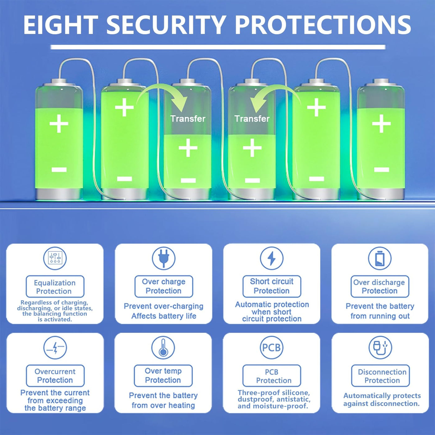 Q: What safety features are included in the JKBMS Smart BMS?A: The JKBMS Smart BMS is equipped with multiple safety features, including overcurrent protection, overcharge protection, over discharge voltage protection, short circuit protection, and temperature protection to ensure safe operation.