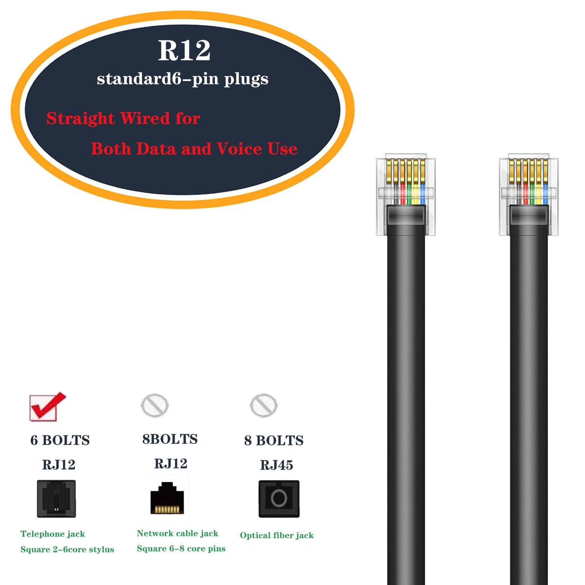Product Description: This Is A Short Rj12 Data Cable ( Also Called Rj11 6P6C Cable ) For Both Data And Voice Use, With A 6P6C Modular Connector Each End, Product Description:If You Have Any Other Purposes Buying This, Please Make Sure That You'Re Clear About Its Wiring Diagram: 1-2-3-4-5-6 Pin To 1-2-3-4-5-6 Pin Our 6 Conductor Rj12 Telephone Line Cable Is Designed For Use With Both Business And Home Telephone Systems. These Heavy Duty Cables Will Work With 1, 2 Or 3 Line Phones. Plug And Play Ready For Fax Lines, Modems, Cordless Or Standard Phones. Pin1 -- Pin1(White) Pin2 -- Pin2 (Black) Pin3 -- Pin3 (Red) Pin4 -- Pin4 (Green) Pin5 -- Pin5 (Yellow) Pin6 -- Pin6 (Blue) Material: Copper Wires Jacket Material: Pvc, Black/White/Silver Cable Length: 6.6/10/15Feet Easy To Install And Reliable Connection 3 Pcs In The Package Attention: Warranty:Offers 30 Days Money-Back And 1 Year Replacement Service