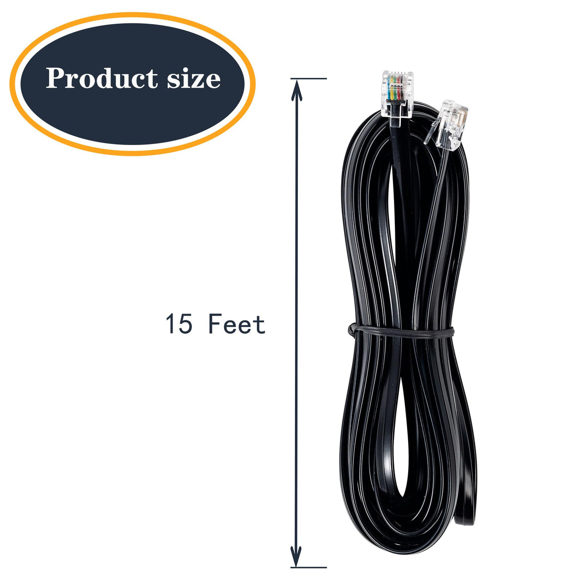 Jmzly Rj12 Cable Phone Cord Rj12 6P6C Male To Male Straight Wired For Both Data And Voice Use Black 15 Feet3 Pack