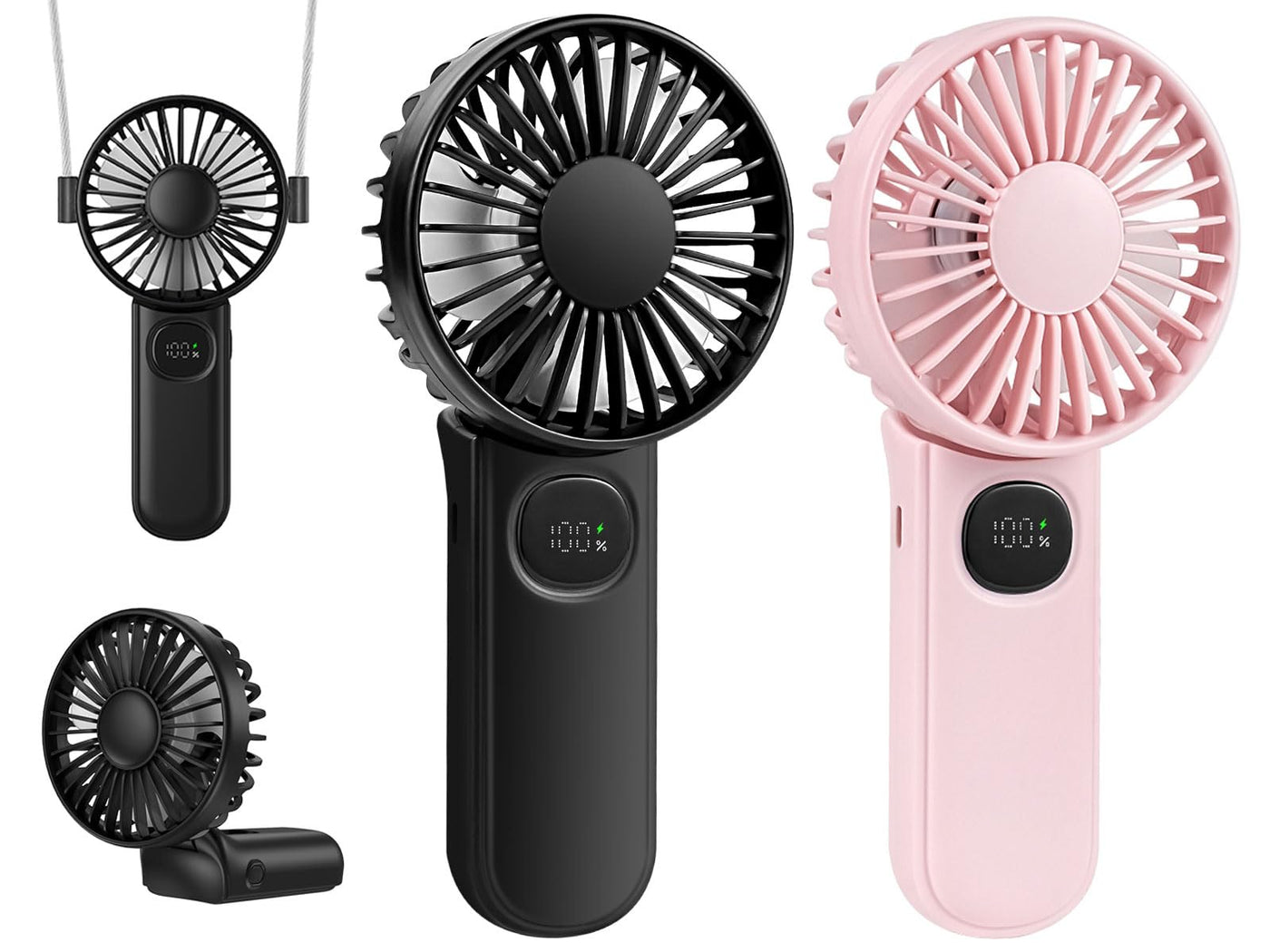 Why Choose Us? Lovely & Cute Appearance The Portable Fan Rechargeable Is Unique And Compact, Wont Take Much Space In Your Purse, And The Curvy Handle Felt Comfortable To Hold Even By Small Hands. This Small Electric Fan Is A Cute Gift For Girls, Boys Or Nieces. Small But Powerful Our Hand Fan Has More Powerful Motor Running At 2600-4500 Rpm. People Who Get It Must Be Surprised By How Powerful It Is Compare To Its Such Small Size, The Quiet Fan Produce Strong Wind To Keep You Cool, Which Would Be A Lifesaver During The Hot Summer. Value Pack With More Color Options We Offer A Value Pack Of 2 With Different Colors -- Black, Pink For Choice That Will Be A Nice Gift For Families, Friends And Colleagues. With Cute And Small Design, This Mini Personal Fan Is Quite Nice To Be A Face Fan, Makeup Fan Or Eyelash Fan For Lash Extensions, Widely Used As The Small Fan For Desk In Office Or Outdoor Fan For Travelling And Camping. Specifications: 1.Size: 7.63X1.96X3.58Inch 2.Weight: 6.8Oz 3.Battery Capacity: 2400Mah 4.Speed Of Motor Revolution: 2600-4500 Rpm 5.Working Time: 3-12H 6.Charging Time: 2-3H 7.Materials: Pp, Abs, Electronic Component Packing List: 2 X Battery Fan (Black+Pink) 2 X Lanyards 2 X Usb Charging Cable 1 X User Manual