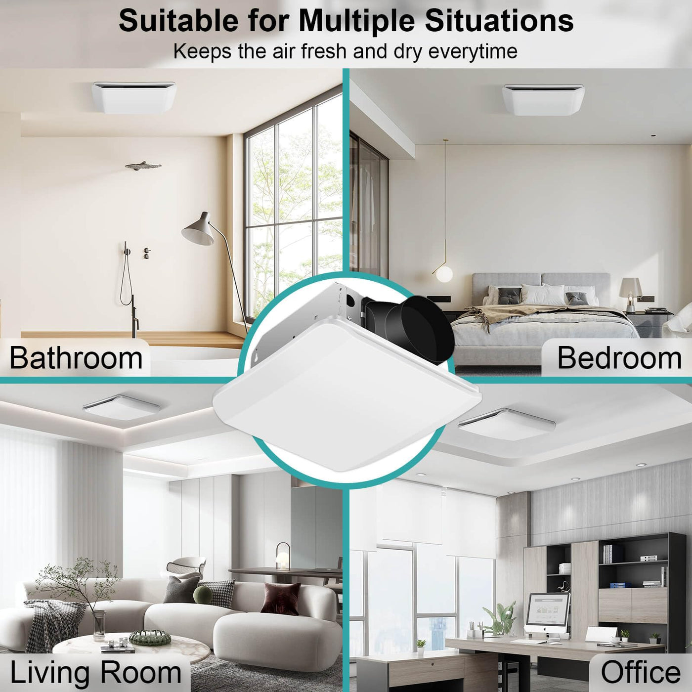 Q: Does the JOEAONZ bathroom exhaust fan have a modern design?A: Yes, the fan features a sleek hidden grille design that integrates seamlessly with your ceiling, providing a clean, modern look without visible vents or bulky grids, enhancing the aesthetic of your bathroom.