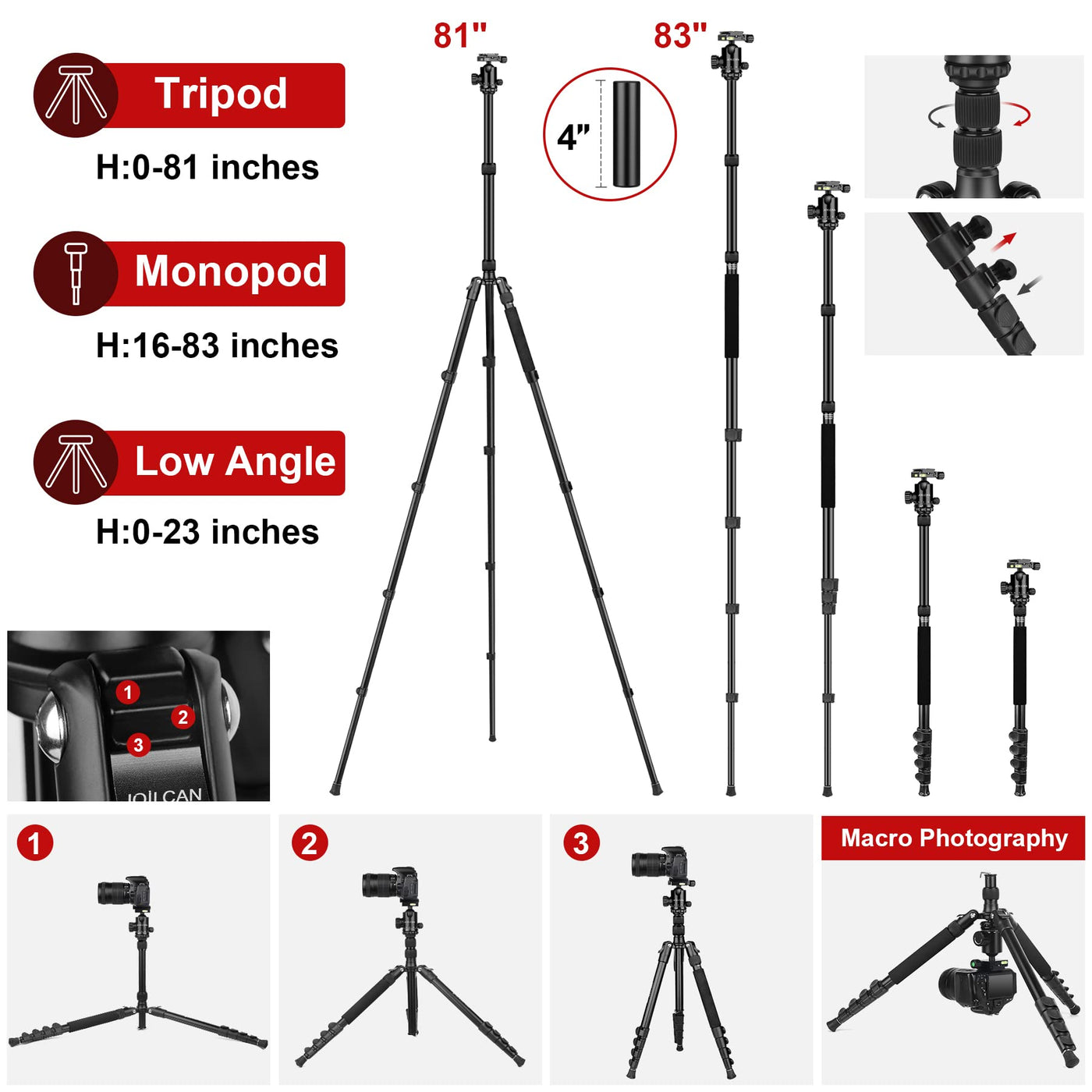 Joilcan Tripod For Camera, 81'' Camera Tripod Stand, 83 Inches Dslr Tripods & Monopods, Heavy Duty Travel Tripod For Binoculars
