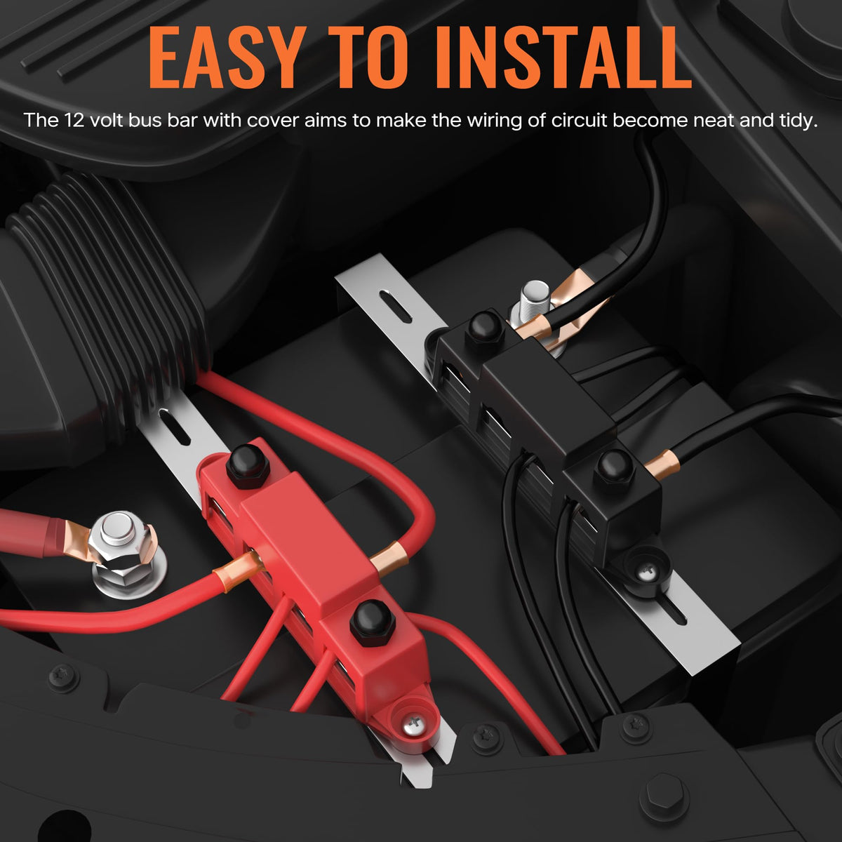 Product: A Pair Of 12V Power Distribution Block, Includes A Positive Power Distribution Block And A Negative Power Distribution Block. Rating: The Battery Distribution Block Rated 400A When Work In 12V Supplier Circuit, And The Battery Terminal Block Can Handle Max 48V Source Power. 5/16' Stud Terminal: The Battery Bus Bar Terminal Block Includes 4 X 5/16' Stud Terminal And 3 X #8 Screw Terminal, Which Makes The 12V Bus Bar Be Able To Accept Large Size Terminal Connectors And Wires. Protect Cover & Nuts: Each Power Bus Bar Will Come With A Protect Cover And Two Nuts, Which Helps To Shelter As Much Exposed Area As Possible To Reudeces The Risks Of Accidental Contact And Prevent Short Circuit, Makes The Circuit Safer. Application: The 12 Volt Bus Bar With Cover Aims To Make The Wiring Of Circuit Become Neat And Tidy, Preventing Mess Harness From Causing Electric Short Circuit, Suitable For Automotive, Car, Truck, Marine, Boat, Solar Wiring.
