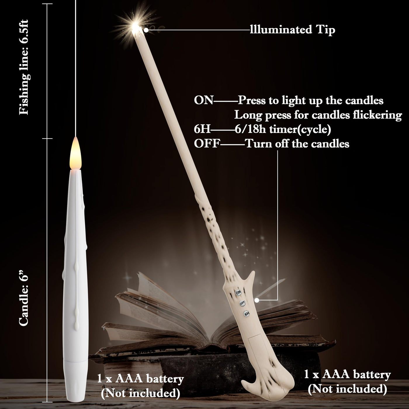 Joione Floating Candles With Wand, 12 Pack Halloween Flameless Candles Magic Hanging Taper Candles With Wand Remote, Battery Ope