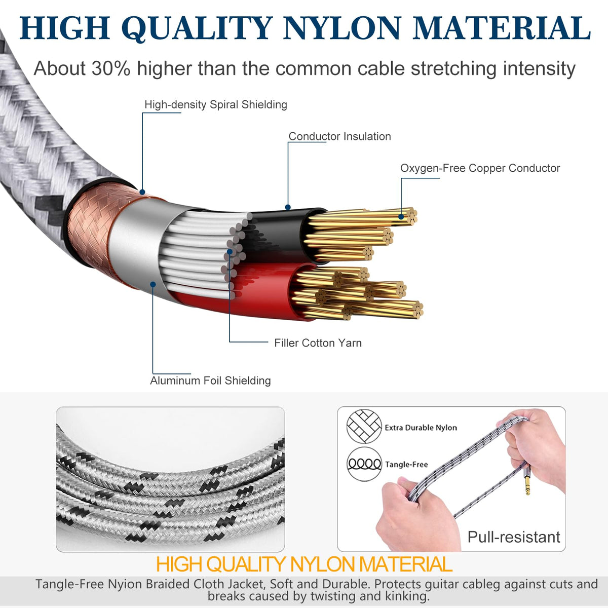 Pro Grade Xlr Cable : Professional Series Xlr Plugs, The Sensible Choice For Professional Audio Equipments With 1/4 Inch Trs And Xlr Connectors. Give You The Perfect Sound Quality! | Excellent Sound : 20 Awg 4N Oxygen Free Copper With Shielding, Foil Shielding And Metal Braid Shield Eliminate Interference, Deliver Pristine Sound, Noise Shielding, No Hum, No Noise, Crystal Clear Music. High Quality Noise Free Performance. | Professional Quality : 24K Gold-Plated Connectors For Resist Corrosion And Offer A Clear, Smooth-Flowing Optimal Signal, Ensures Minimum Signal Loss Transfer; The Right Size, They Always Fit Correctly, Never Too Tight Or Too Loose. | Durability : The Wire Is Flexible And Strong Toughness, Environmentally Friendly Pvc, And Premium Metal Housing And Durable. 15000+ Bend Lifespan & Braided Nylon Exterior Make Audio Cables Adding To The Durability And Tangle Free. | Usage : Xlr Male To 1/4 Inch 6.35Mm Trs Cable Compatible With Equipments With 3 Pin Xlr Connectors And 6.35Mm Socket Such As Mixer, Camera, Amplifier, Soundbox, Microphone, Power Amplifier.