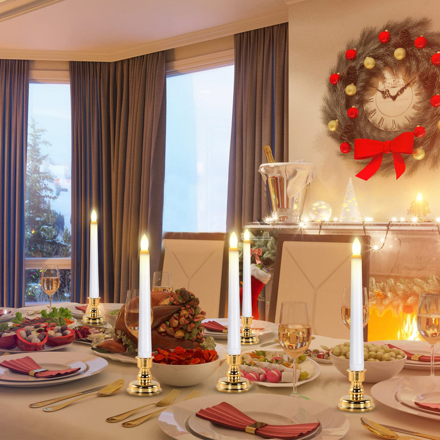 Josu Taper Candles Battery Operated: 4Pcs Flameless Candles With Remote Control 3D Wick Led Candles Flickering +4 Gold Candles