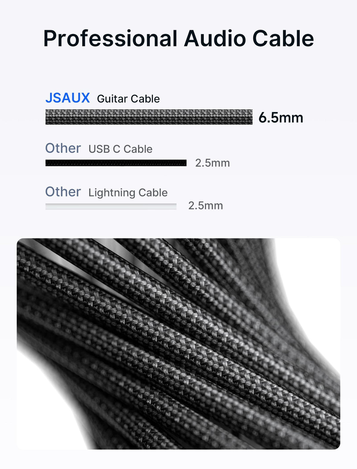 Pro Guitar Cablejsaux Guitar Cables Are Thicker Than Most Audio Cables On The Market. Our Guitar Cord Is So Thick Because It Has Multiple Protective Designs To Resist Interference. When You Use Our 1/4 Cable Plug Into Guitar, It Won'T Has Static And Crackling. You Can Use It With Confidence.Ts Vs Trsjsaux Instrument Cable Is Unbalanced (Ts) Audio Cable. The Port Is 1/4'' Ts. If You Want To Plug In Your Guitar Or Bass Or Even Keyboard, You Need Unbalanced (Ts) Audio Cables, Not Balanced (Trs) Audio Cables. Trs Cables Will Produce Inferior Results In These Situations And Sometimes May Not Work At All, Depending On The Construction And Wiring Of The Things They'Ll Be Plugged Into. Be Sure You Are Buying The Right Kind Of Cable.Pure Sound And Clarityjsaux Electric Guitar Cord Is Made With High Quality Copper To Ensure Stable Signal Transmission, No Electric Humming. Premium Nylon Braided Make This Electric Guitar Cable Durability And Tangle Free. There Has A Strap To Help You Wrap This Guitar Cable.Wide Compatiblejsaux Instrument Cable Compatible With Electric Guitars, Amplifiers(Amp), Electric Bass, Electronic Drums, Effect Pedals, Speakers, Mixers, Tuners, Microphones(Mic), Keyboards, Saxophones, Electric Acoustic And More. You Can Use This Audio Cable To Connect Pro Audio And Dj Equipment.What You Getyou Can Get A Grey 1/4 Guitar Cable 6.6 Ft. One Port Is Right Angle, One Port Is Straight. L Shape Great For On Stage Guitar Stands. If You Have Any Problem, Please Contact Us. We Will Try Our Best To Help You. Electric Guitar Cable, Guitar Cord, Instrument Cable, 1/4 Guitar Cable, Guitar Cable