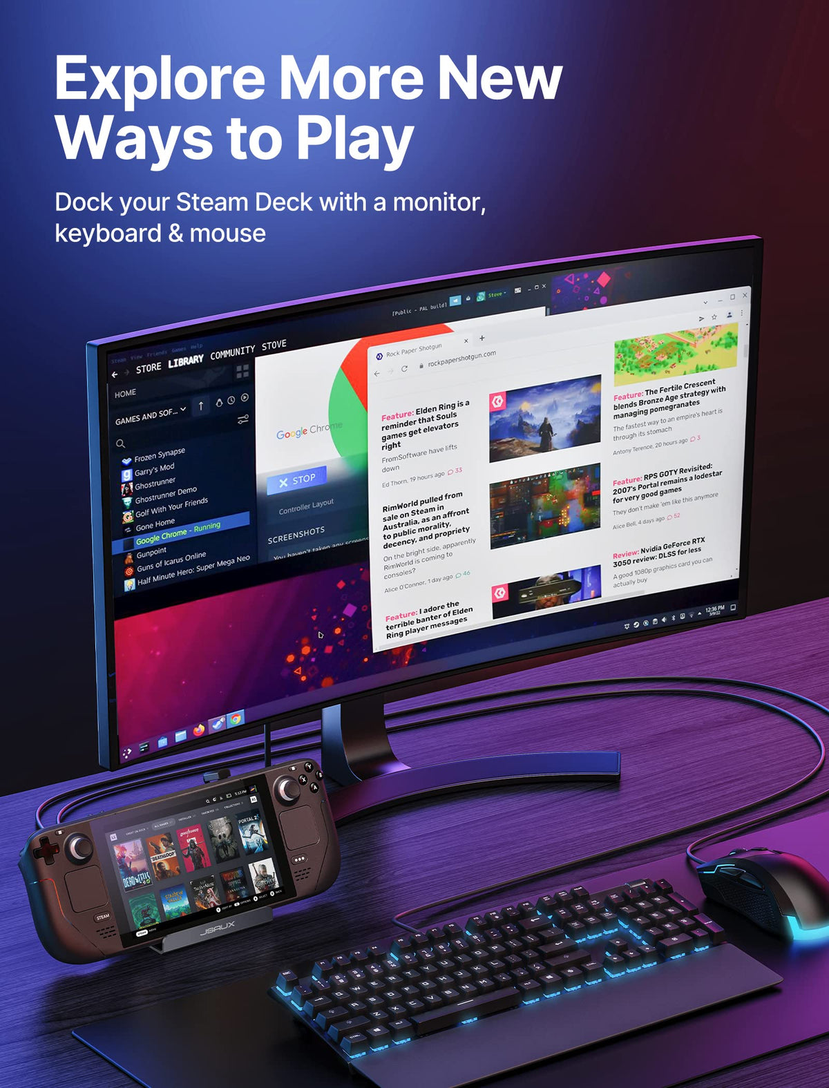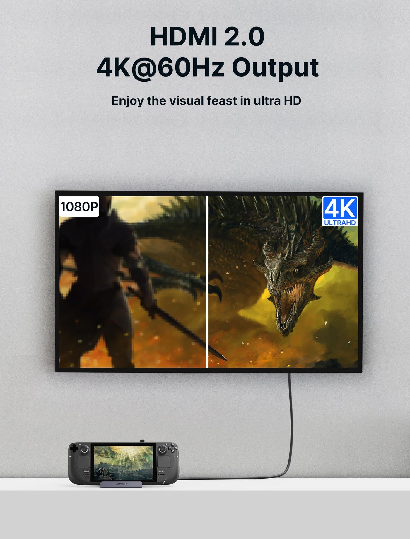 Steam Deck Docking Station Generation 1St (Manufactured By Jsaux) Note: 1. It Got 100 Mbps Ethernet & Usb 2.0 Instead Of The Gigabit Ethernet & Usb 3.0.2. Jsaux Recommends That You Connect Your Charger When Using The Dock To Ensure Stable And Efficient Operation. 5-In-1 Docking Station For Steam Deck : Equipped With An Hdmi 4K@60Hz Output, An Rj45/Ethernet Input, A Usb-C Port For Charging And Dual Usb-A 2.0 Ports, Letting You Explore A New Way To Play With Steam Deck.4K@60Hz Hdmi Output : The Steam Deck Dock Comes With A 4K@60Hz Hdmi 2.0 Output. When You Connect An External 4K Monitor, It Can Provide You Sharper And Smoother Visual Experience, So You Can Enjoy The Visual Feast On Your Games.Full Charging Speed For Steam Deck : Jsaux Steam Deck Docking Station Supports 100W Max Power Delivery, Which Is Sufficient To Charge Your Steam Deck At Full Speed When Paired With The Original Charger. [Note: The Max Charging Speed Of Steam Deck Is 45W]A Perfect Combination : Jsaux All-In-1 Steam Deck Docking Station Blends Hub And Stand Together Perfectly. You Dont Have To Buy A Regular Hub And A Stand Base For Your Steam Deck, Which Is Not Only Easier For You To Use, But Also Keeps Your Desktop Neat And Organized.Compatibility : The Docking Station Is Designed For The Steam Deck, But It Also Compatible With Ipads And Android Phones With Usb-C Ports.