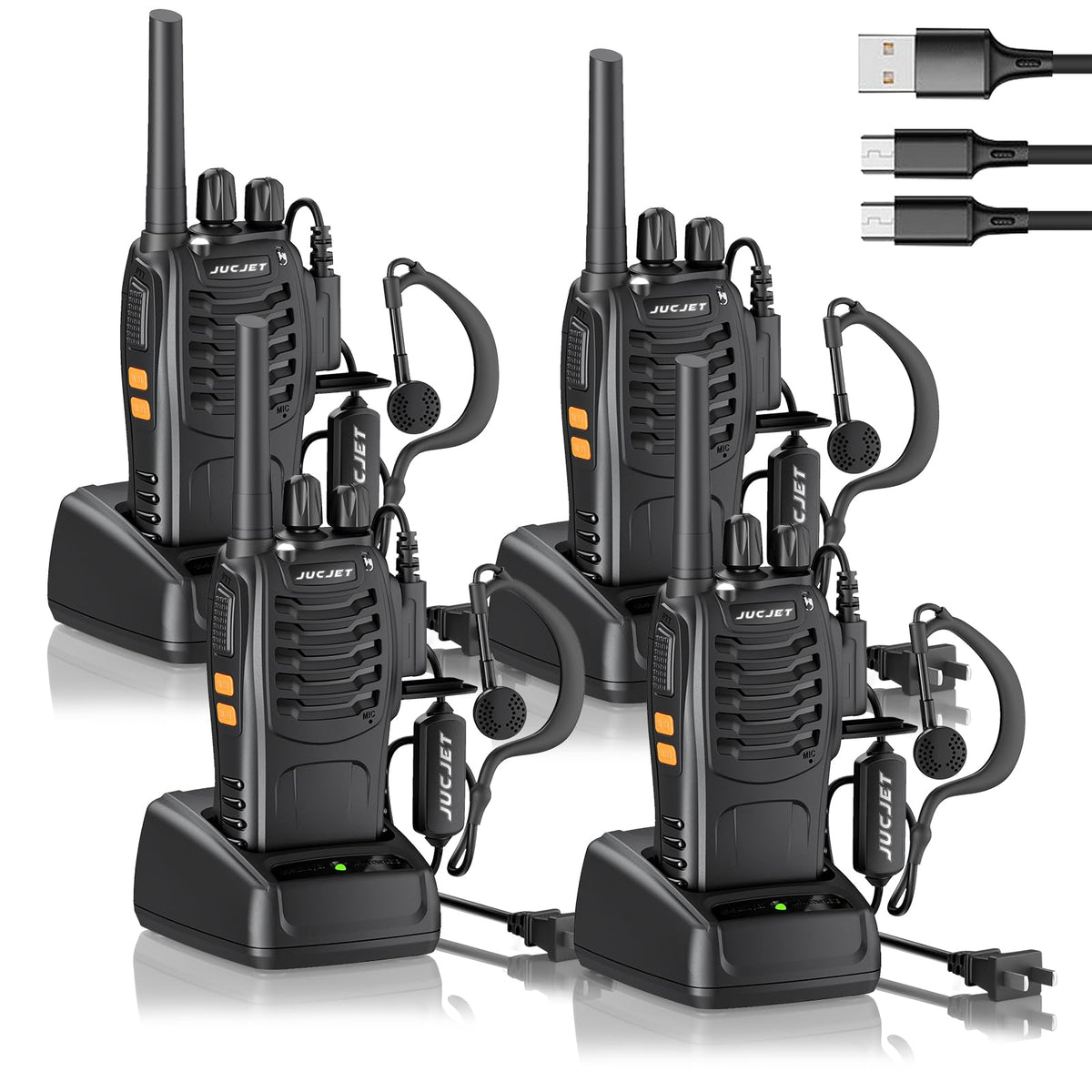 Jucjet H888S (4 Pack) Walkie Talkies Handheld Two Way Radio With Original Earpieces, 2 Way Radios Uhf Handheld Transceiver Walky