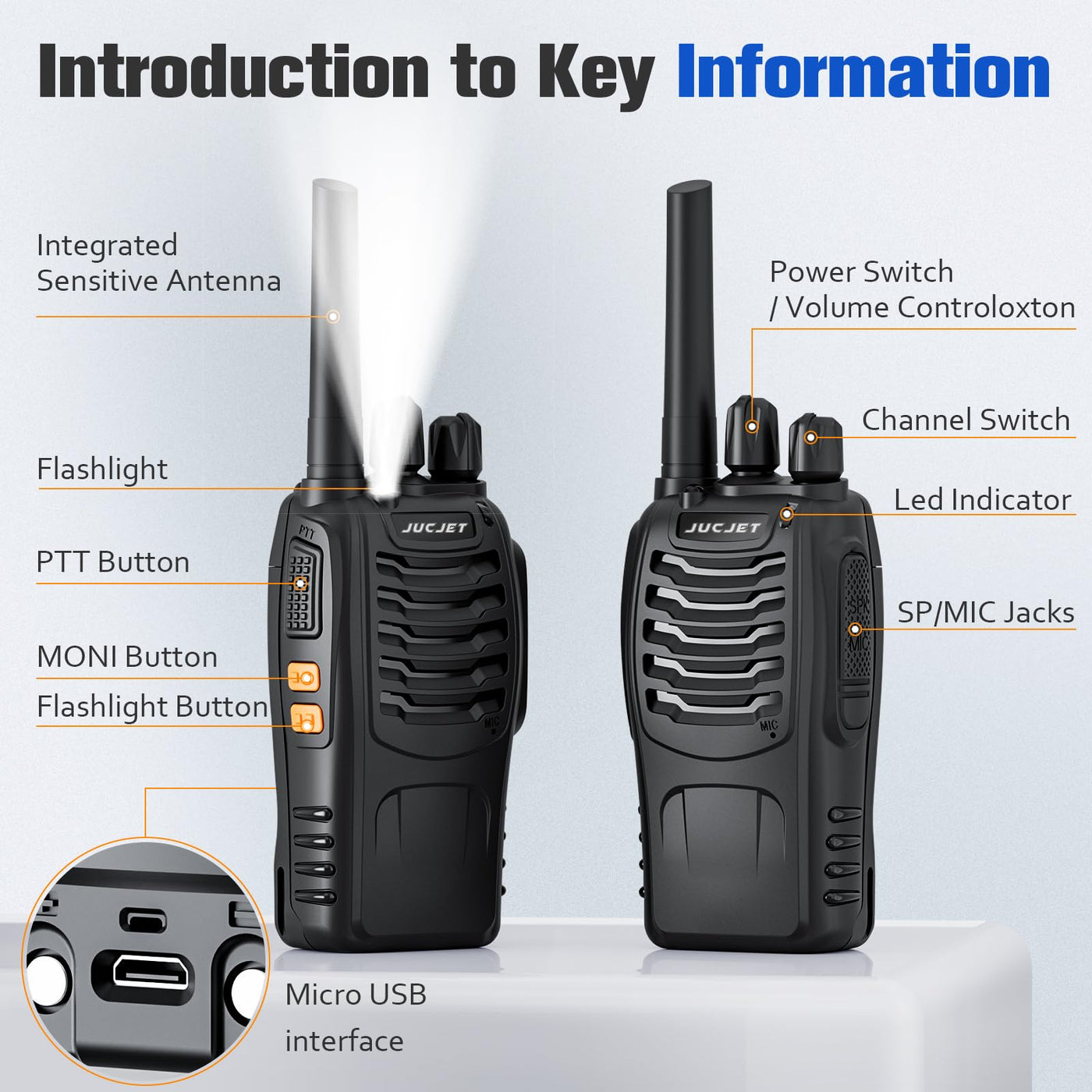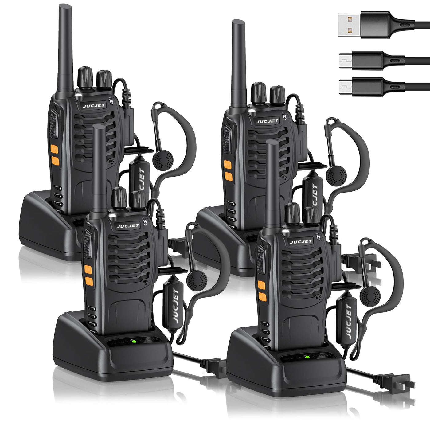 Jucjet Walkie Talkies Handheld Two Way Radio With Original Earpieces, 2-Way Radios Uhf Handheld Transceiver Walky Talky, With 2-In-1 Type-C Charging Cable&Charging Station(4 Pack)