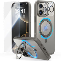 Jueshituo 3 In 1 For Iphone 16 Pro Max Case, 360 Rotatable Magnetic Ring Stand With [Rotary Damping Sound] [1X Screen Protector+