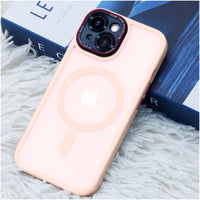 Jueshituo For Iphone 15 Case With Integrated Camera Lens Protection, [Tailored For Magsafe] [Mil-Grade Shockproof Defense] Translucent Matte Protective Case For Iphone 15, Pink