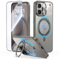 Jueshituo Tickstand Series Case For Iphone 15 Pro - 6.1'', 360Rotatable Magnetic Stand & Ring Holder With Rotary Damping Sound, Fit For Magsafe, Military Shockproof Protective Phone Cover.