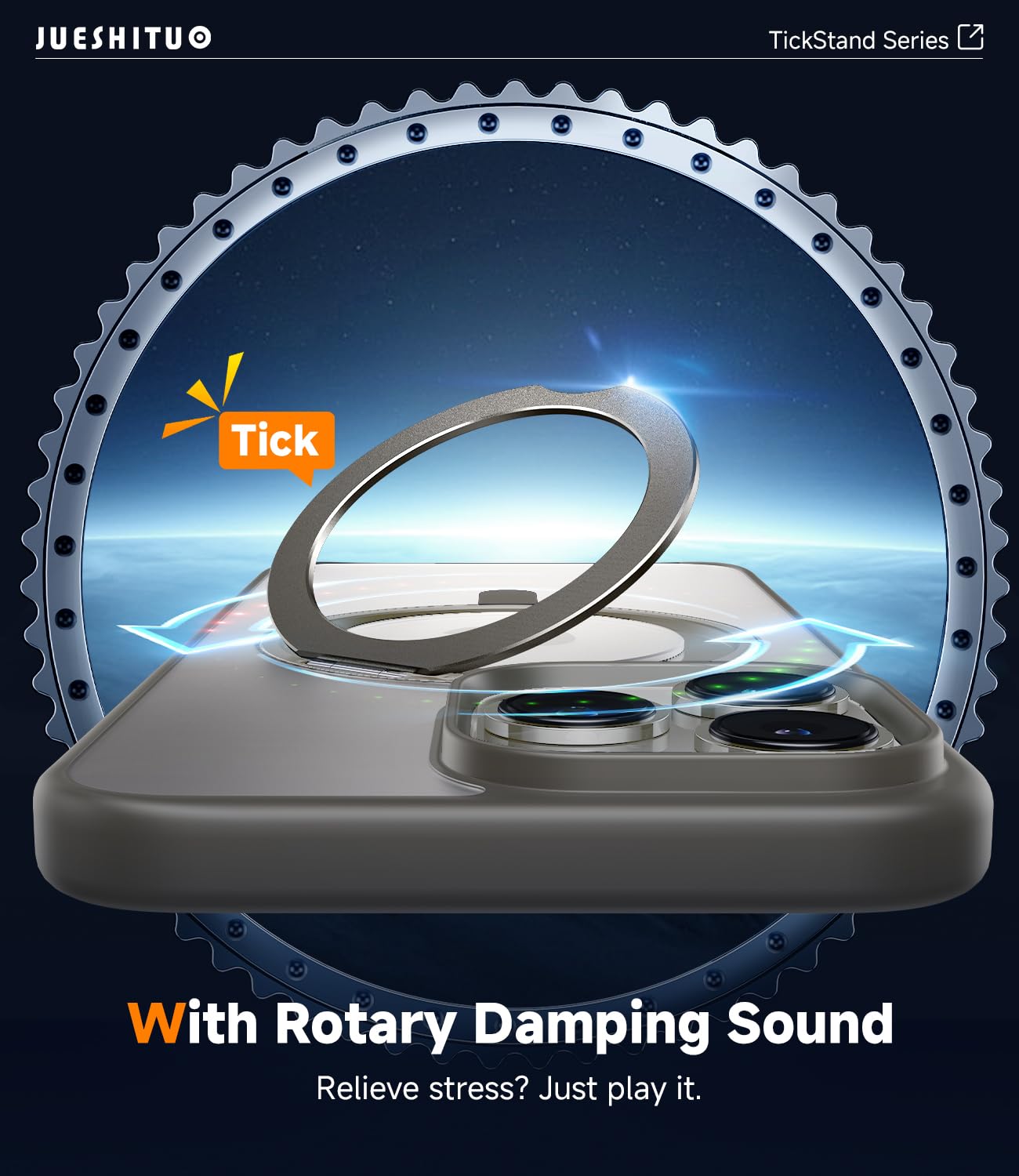 Jueshituo For Iphone 15 Pro Case: 360Rotatable Magnetic Ring Stand & Holder With [Rotary Damping Sound], Fit For Magsafe, Milita