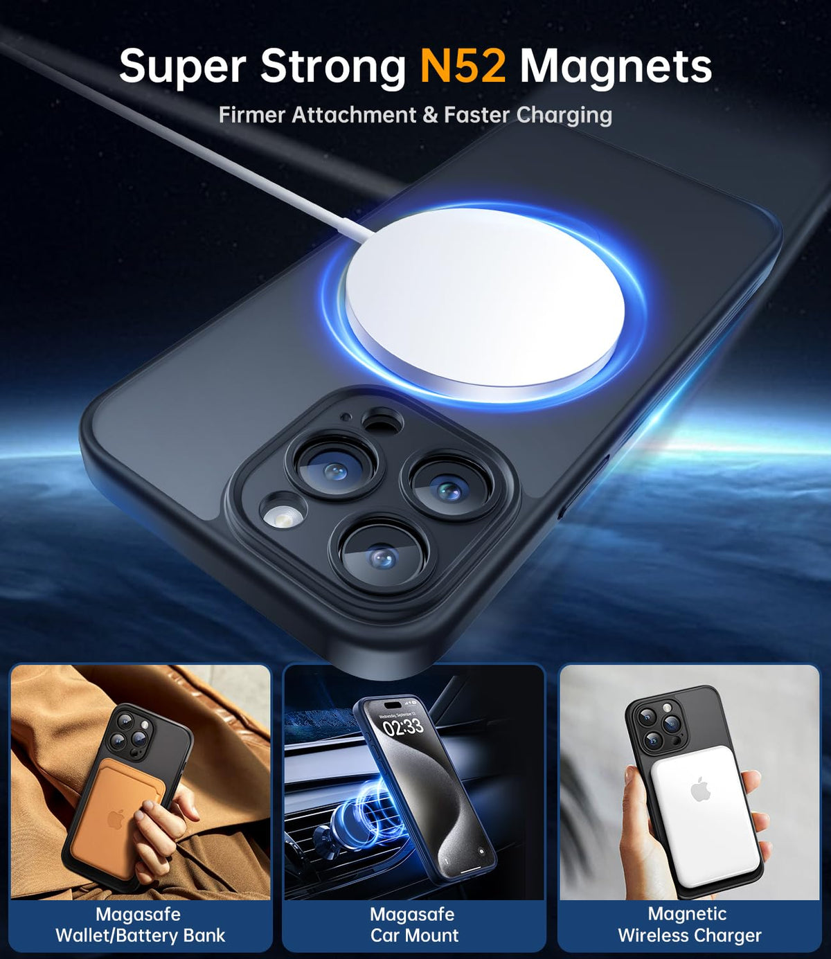 Q: Is the JUESHITUO iPhone 15 Pro Case compatible with MagSafe accessories?A: Yes, the JUESHITUO iPhone 15 Pro Case is designed with a magnetic ring that is fully compatible with all MagSafe accessories, allowing for efficient wireless charging and secure attachment.
