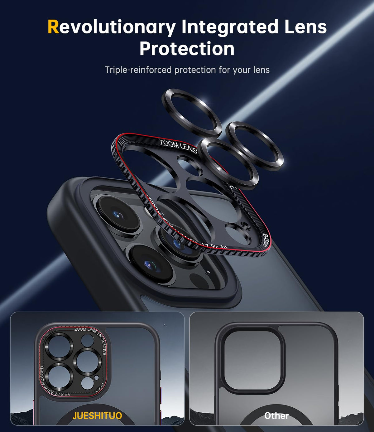 Jueshituo For Iphone 15 Pro Max Case With Integrated Camera Lens Protection, [Tailored For Magsafe] [Mil Grade Shockproof Defens