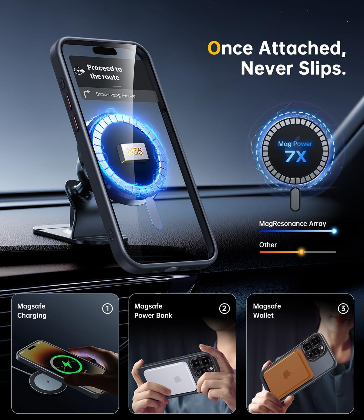 Q: Is this case compatible with MagSafe accessories?A: Absolutely! This case is specifically tailored for MagSafe, featuring a built-in magnet ring structure that enhances magnetism, allowing for secure attachment to all MagSafe accessories without any risk of falling off.