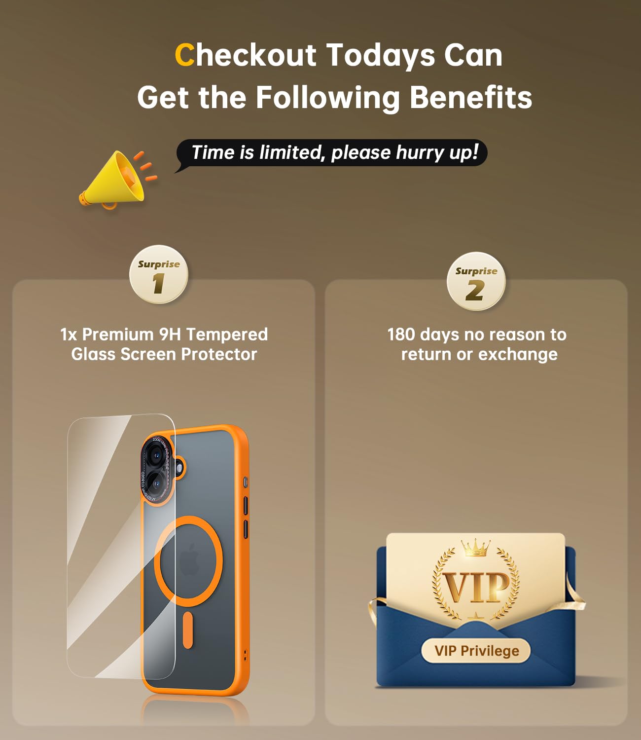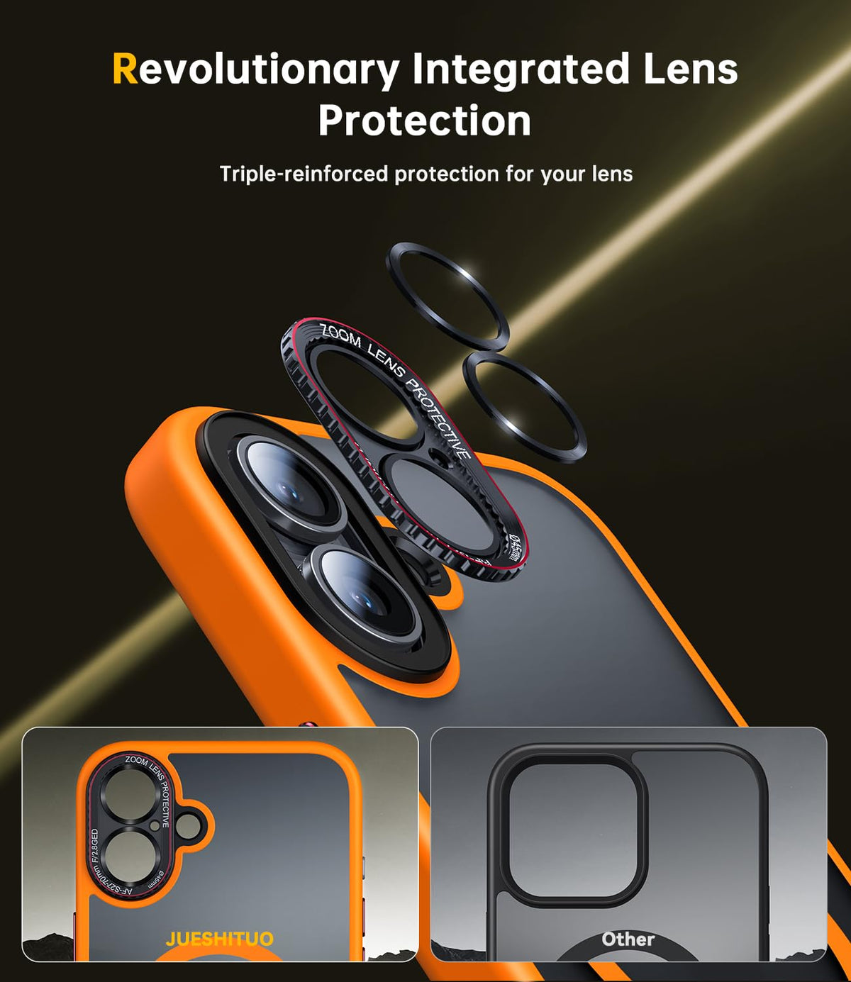 Jueshituo For Iphone 16 Plus Case With 1X Screen Protector, [Tailored For Magsafe] [Mil-Grade Shockproof Defense] With Integrated Lens Protection Translucent Phone Case For Iphone 16 Plus, Orange