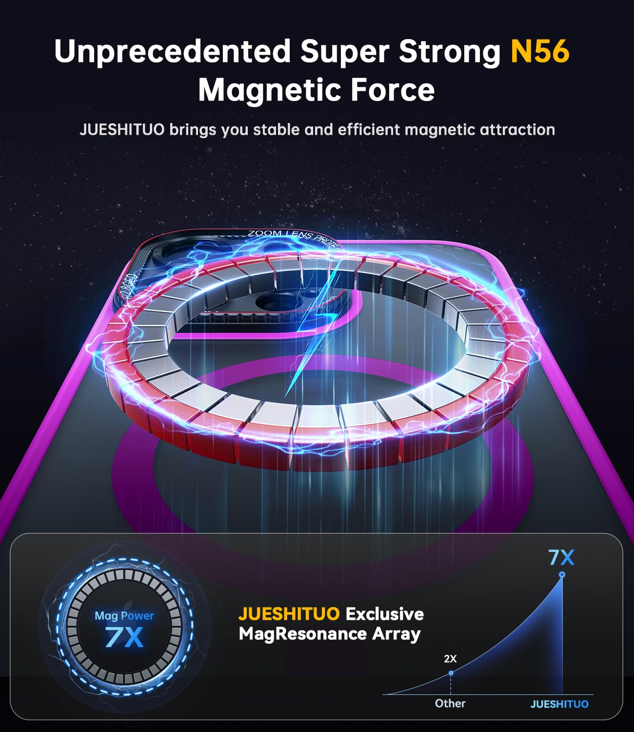 Q: Is the JUESHITUO case compatible with MagSafe accessories?A: Yes, the JUESHITUO case for iPhone 16 Pro Max is specifically designed to be fully compatible with MagSafe accessories, featuring a built-in 48-magnet ring that ensures a secure connection.
