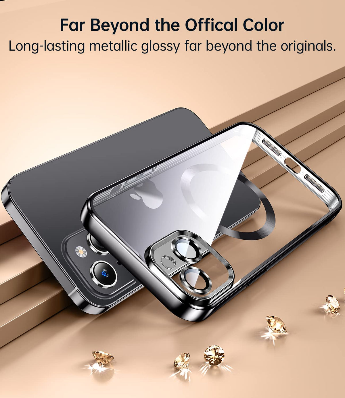 Jueshituo Magnetic Metallic Glossy Clear For Iphone 14 Case With Full Camera Cover Protection [No.1 Strong N52 Magnets] [Militar