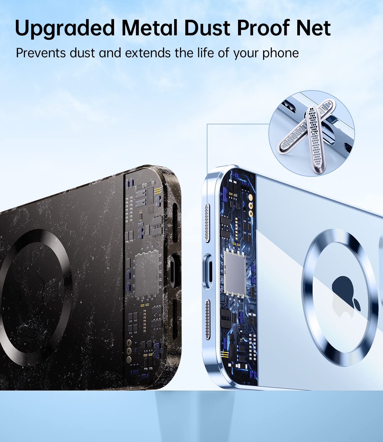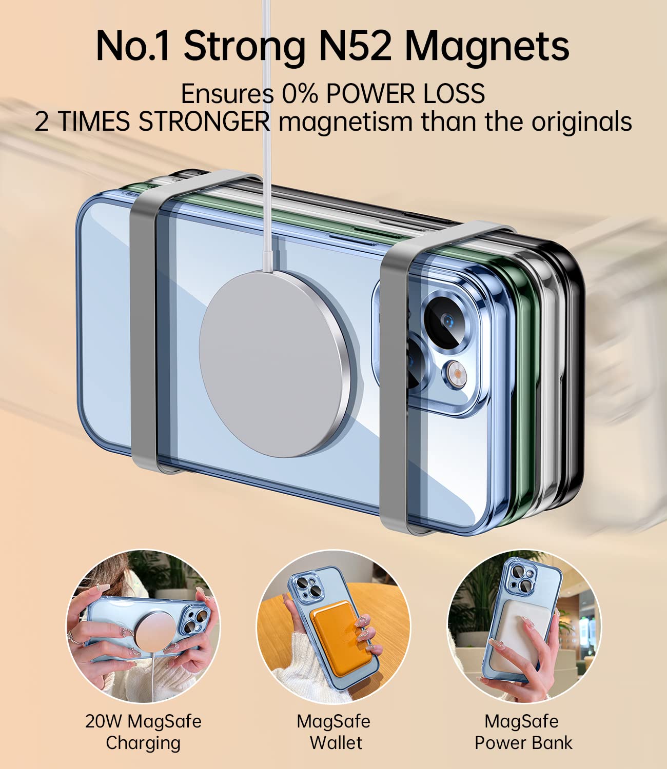 Jueshituo Magnetic Metallic Glossy Clear For Iphone 14 Plus Case With Full Camera Cover Protection [No.1 Strong N52 Magnets] [Mi