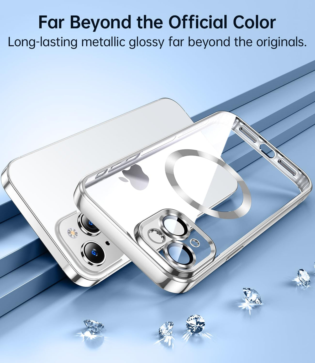 Jueshituo Magnetic Titanium Glossy For Iphone 15 Plus Case With Full Camera Protection [No.1 Strong N56 Magnets] [Military Grade