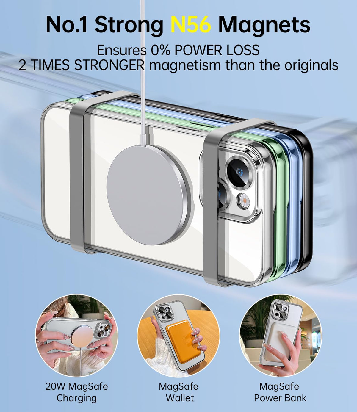 Q: Is the JUESHITUO Magnetic Titanium Glossy case compatible with wireless charging?A: Yes, the JUESHITUO Magnetic Titanium Glossy case is designed to allow for wireless charging without any power loss, ensuring a faster and more efficient charging experience.