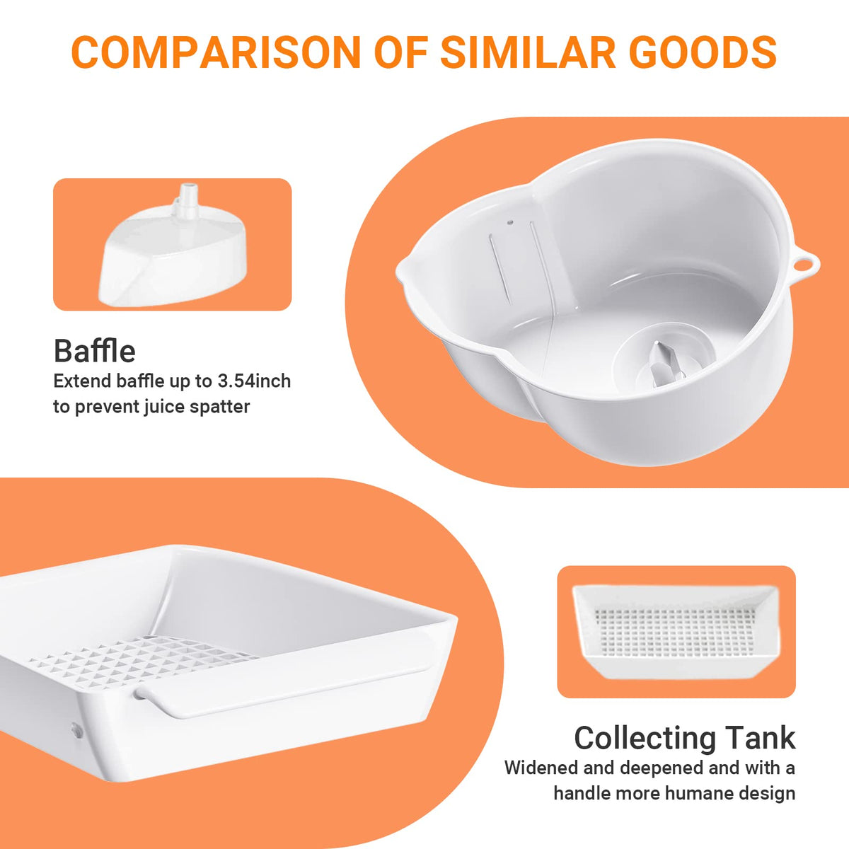 Q: Does the Cofun Juicer Attachment prevent juice splatter?A: Yes, the design of the Cofun Juicer Attachment includes extended baffles that effectively minimize juice splatter, ensuring a cleaner juicing experience.