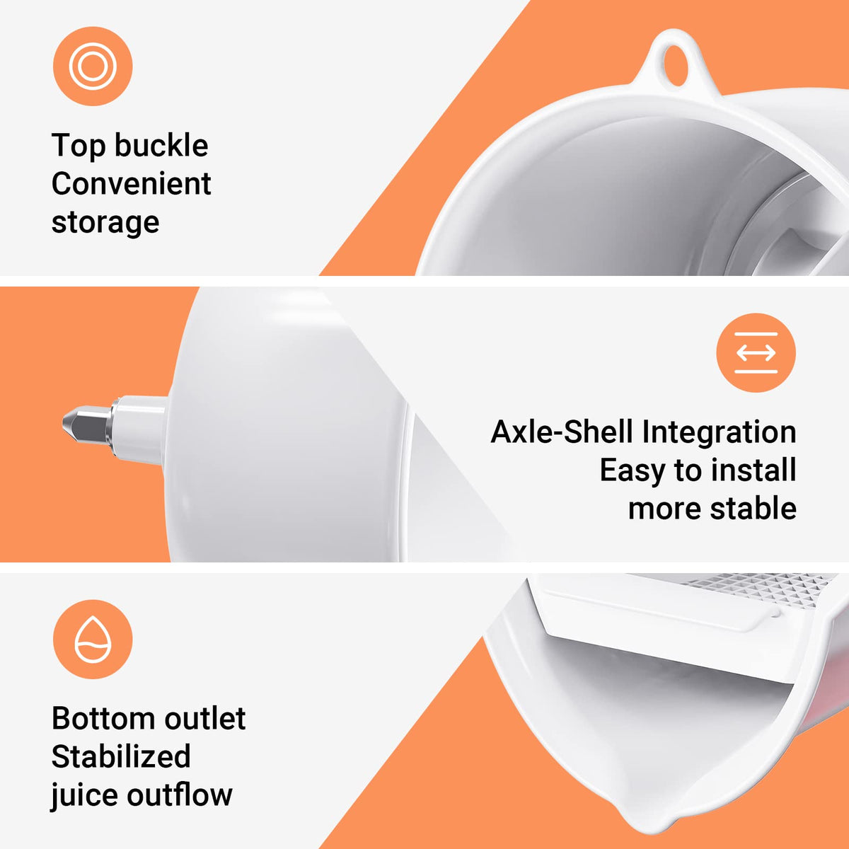 Choose Cofun To Make You Feel More At Ease. Cofun Focuses On The Research Of Home Kitchen Kitchenware, Determined To Let Every Home Kitchen Feel The Fun Of Cooking, So That You Can Make Healthy Food More Easily And Save Time. With A Juicer Attachment To Kitchenaid Stand Mixer, You Can Drink Fresh Citrus Juice At Home, Just Cut The Citrus Fruit In Half Can Be Juiced. The Whole Process Is Simple And Fast. Compared With The Fruit Juice Directly Bought Outside, Their Own Juice Can Ensure The Freshness Of The Fruit, The Original Taste Of Drink Health And Rest Assured. Unlike Its Market Counterparts, Cofun'S Juicer Attachment For Kitchen Aid Has Been Fully Upgraded, With Two Different Reamers Carefully Addressing The Problem Of Citrus Fruits Of Different Sizes. The Top Of The Main Body Has Been Added To The Design Of The Suspender, Convenient Storage And Saves Your Kitchen Space. The Deepened Shell Allows The Kitchenaid Juicer Attachment For Stand Mixer To Better Capture The Juice Without Having To Worry About The Splash Problem. The Filter Of Kitchen Aid Juicer Attachment For Kitchenaid Stand Mixer Is Enlarged And Deepened, And The Handle Is Added, So That You Do Not Have To Clean The Filter Frequently, And You Do Not Need To Touch The Pulp With Your Hand When You Need To Take Out The Filter, Which Is Cleaner And Sanitary. The Smart Closing Design At The Bottom Of The Kitchenaid Mixer Juicer Attachment Allows Juice To Flow Into The Cup More Accurately, Making Your Kitchen Clean And Tidy.