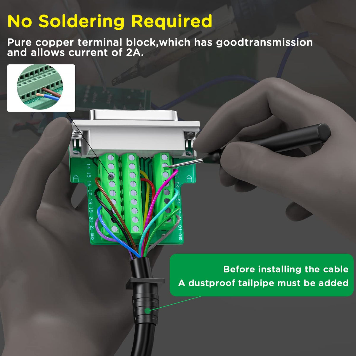 Db25 Pin Solderless Connector Pin Adopts Pure Copper Gold Plating And Ultra-Thin Shell Design, Without Welding Cables.&Nbsp; This Product Complies With Rohs Environmental Protection Standard.&Nbsp; The Private Mold Manufacturing Has The Characteristics Of Wear Resistance And Bending Resistance, And The Quality Is Guaranteedtechnical Specifications:Product Name: Db25 Welding Free Jointproduct Model: Solid Needle Male / Female, Punching Needle Male / Femaleshell Material: Abs Environmental Protection Plastic Shellconnector Material: White Environmental Protection Rubber Core / Pure Copper Gold Plated Pinterminal Material: Pure Copper Environmental Protection Terminal / Environmental Protection Fireproof Rubbertail Sleeve: Environmental Protection Flexible 8Mmapplications: Plc, Pda, Bar Code Machine, Modem, Tax Control Machine, Digital Camera, Set-Top Box, Industrial Instrument, Etc.Size: 67.3Mm 57Mm 20.6Mm/2.65? 2.24? 0.81?Package Includes:2 Db25 Male Solderless Connector2 Cable Clamp4 Screws4 Long Bolts8Pcs Wire Cover1Pcs Screwdrivers&Nbsp;4Pcs 4#5+7 Serial Port Nut&Nbsp;