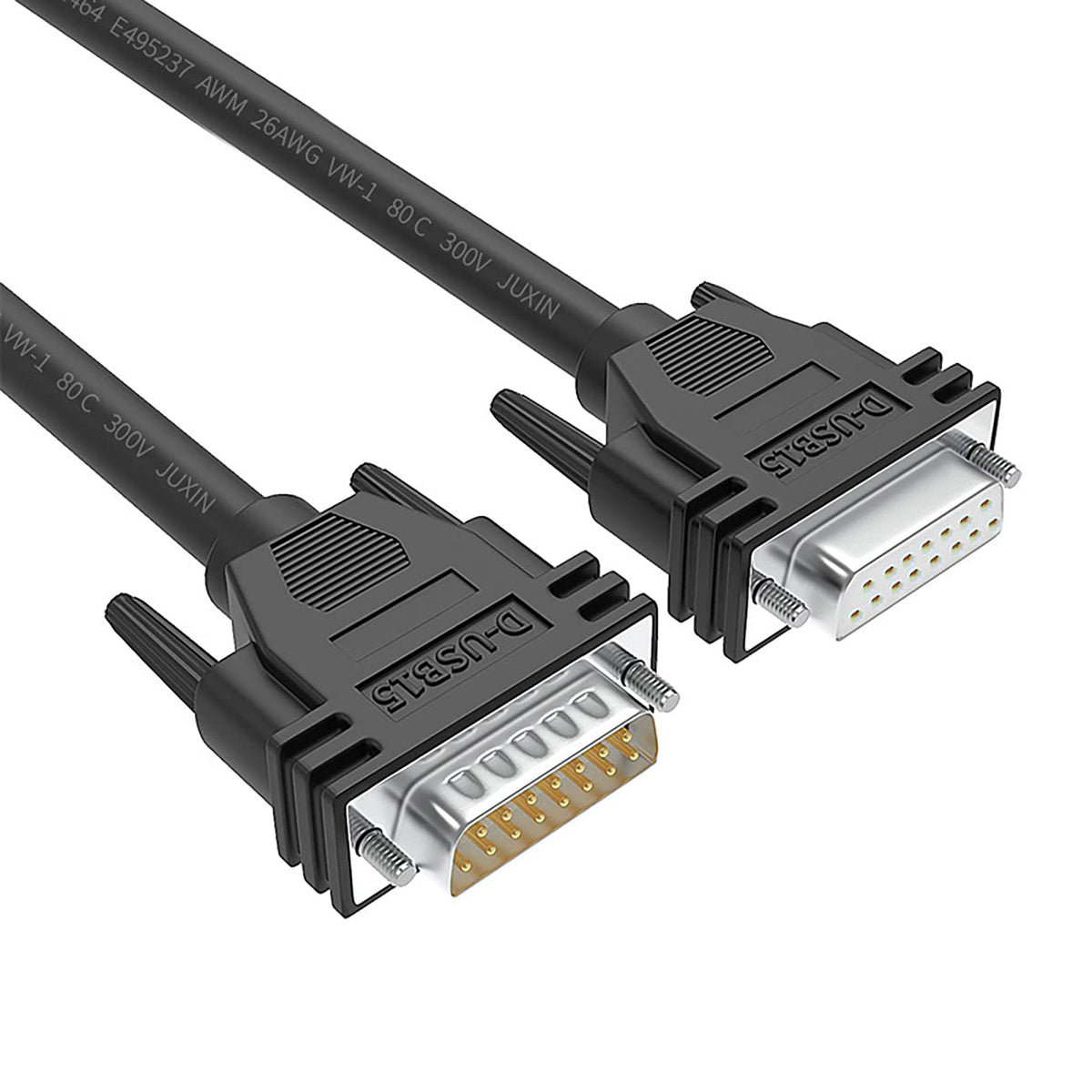 Juxinice D-Sub 15-Pin Cables Provide Exceptional Performance In Commercial, Industrial Or Enterprise Applications Where Longevity And Repeated Disconnects Are Required. Double Shielded Cable Design Features 26 Awg Data-Grade Wire, Pre-Terminated To Db15 Male And Female D-Sub Connectors. Db15 Cable Structure: 15*26Awg(11*0.12Tc)Tinned Copper+Al+Drain+Pvc Jacket And Plus Metal Braid Shield, Od:7.5Mm