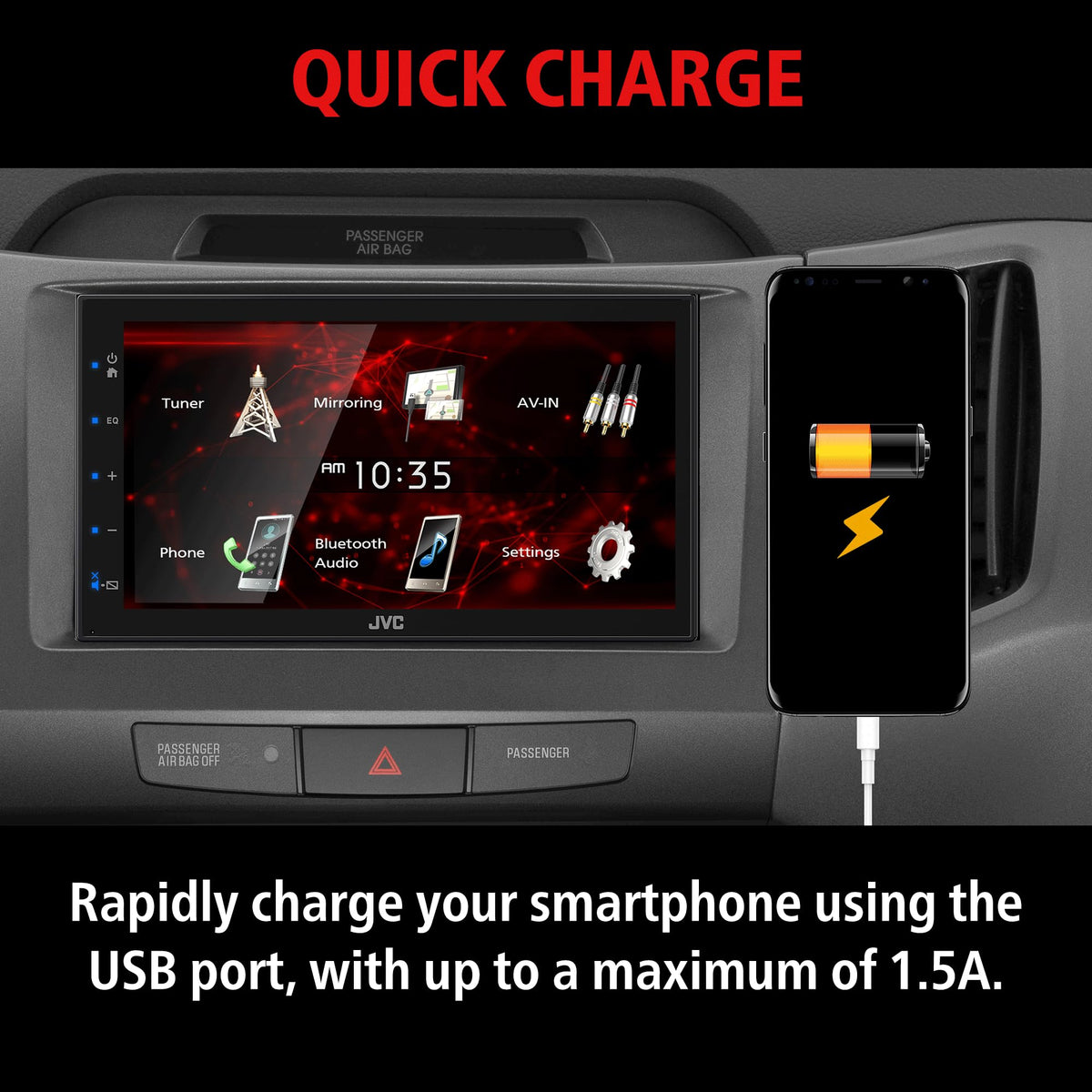A 6.75'' Capacitive Touchscreen Display, Smartphone Integration, And A Nice Price Make Jvc'S Kw-M180Bt Multimedia Receiver A Big Step Up From A Factory Radio. Count On Hands-Free Calling, Music Streaming, And Playback Of Music And Video Files Stored On A Usb Flash Drive As Well. For Android Users, The Big Fun Of This Receiver Is Controlling Your Compatible Android Device Via Screen Mirroring When The Parking Brake Is Engaged. And With An Incredibly Shallow Chassis (3'' Deep), Make The Kw-M180Bt A Better Fit In Challenging Dashboards