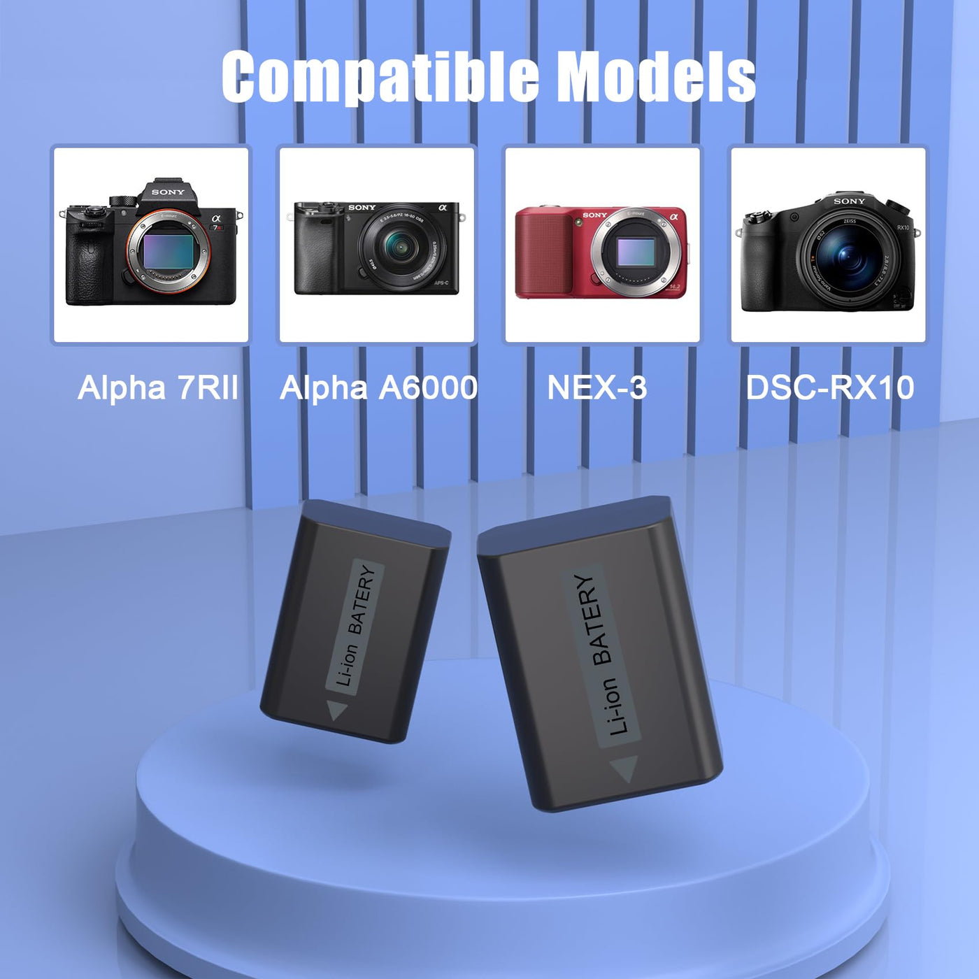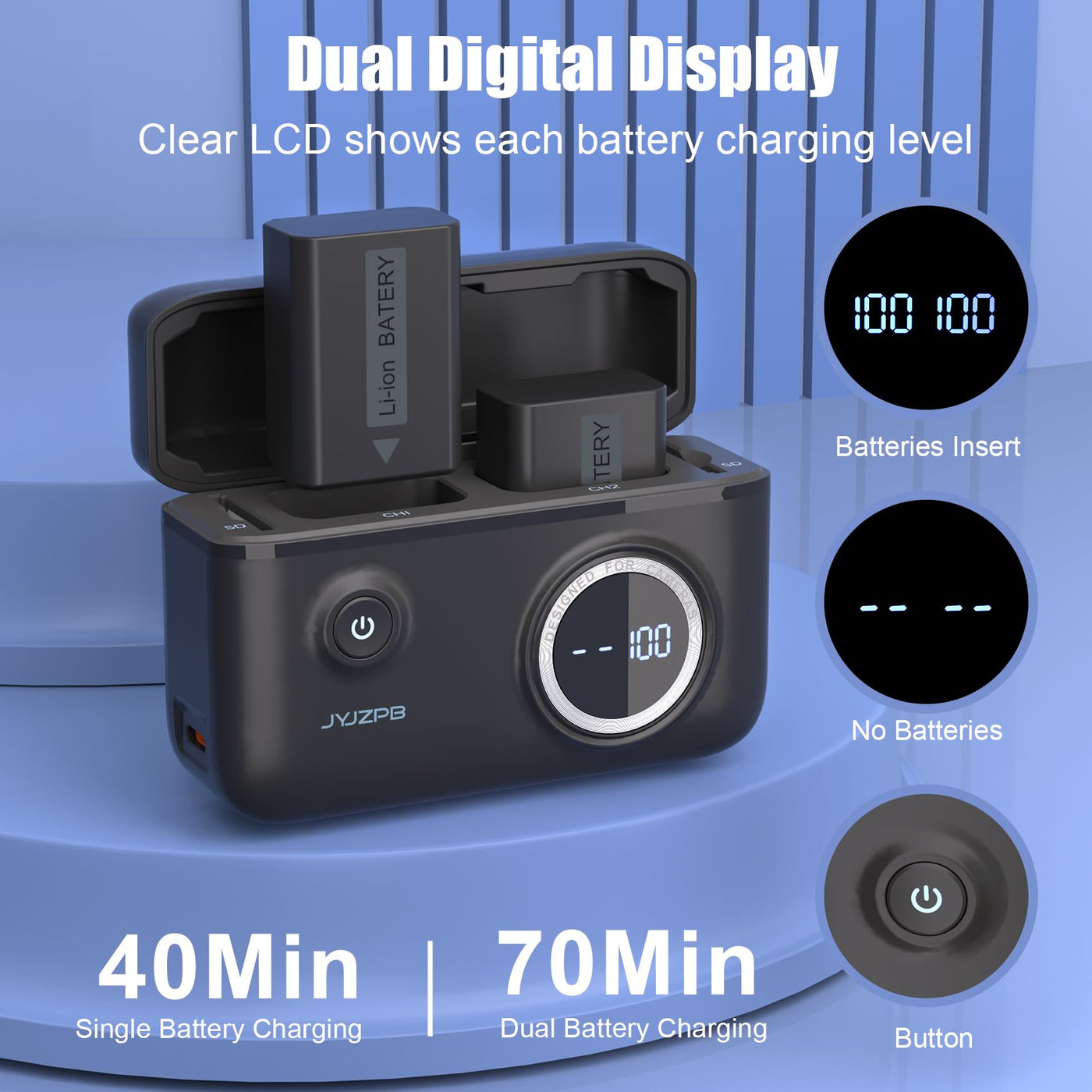 Jyjzpb Np-Fw50 Replacement Battery Charger Set For Sony Alpha A6400 A6500 A6300 A6100 Camera Batteries Charger Case
